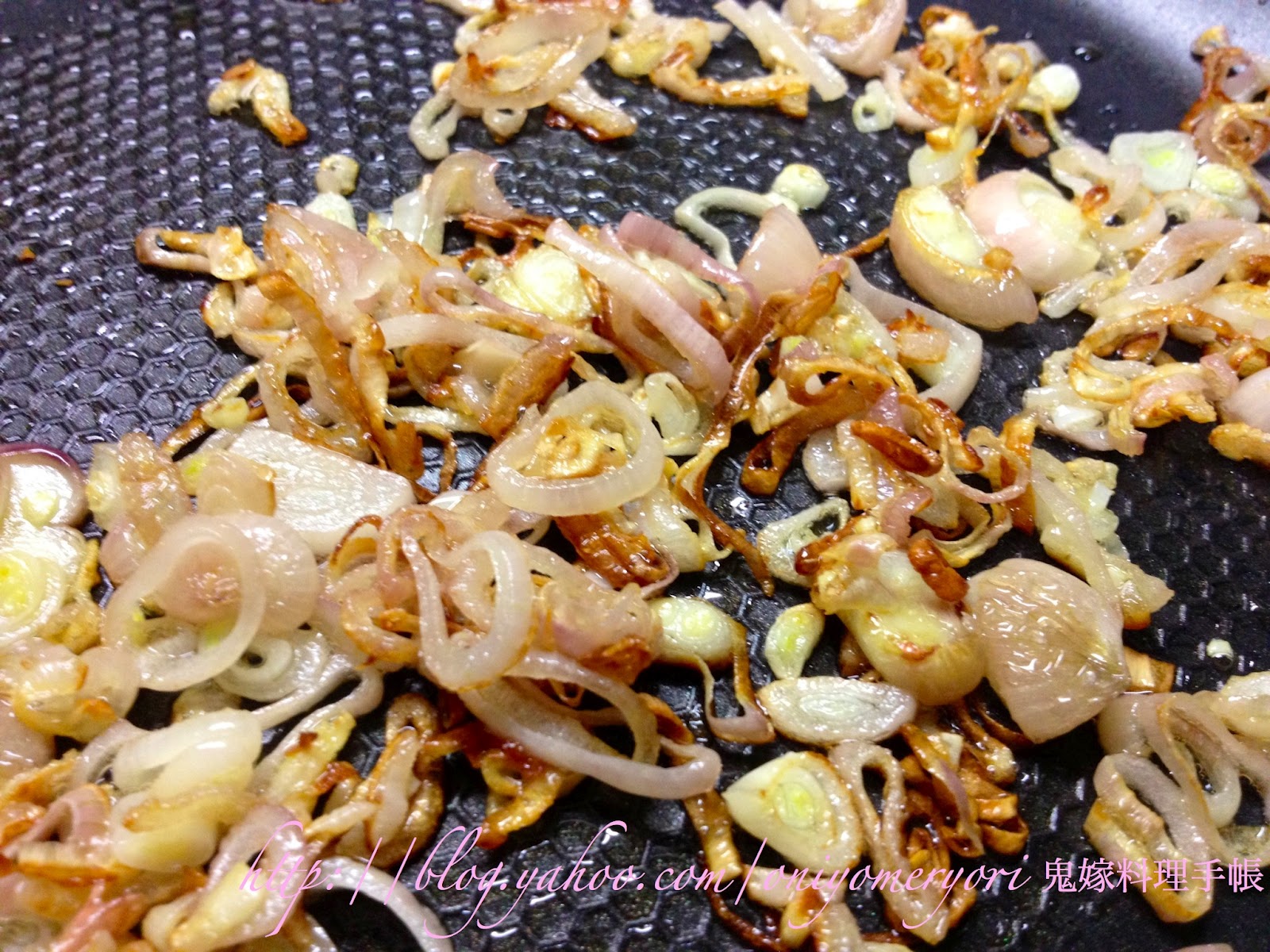 A1 s! e" E0 ^! s公仔箱論壇紅蔥頭切片,平底鍋以1湯匙牛油中小火炒香,約6﹣8分鐘, 盛起備用