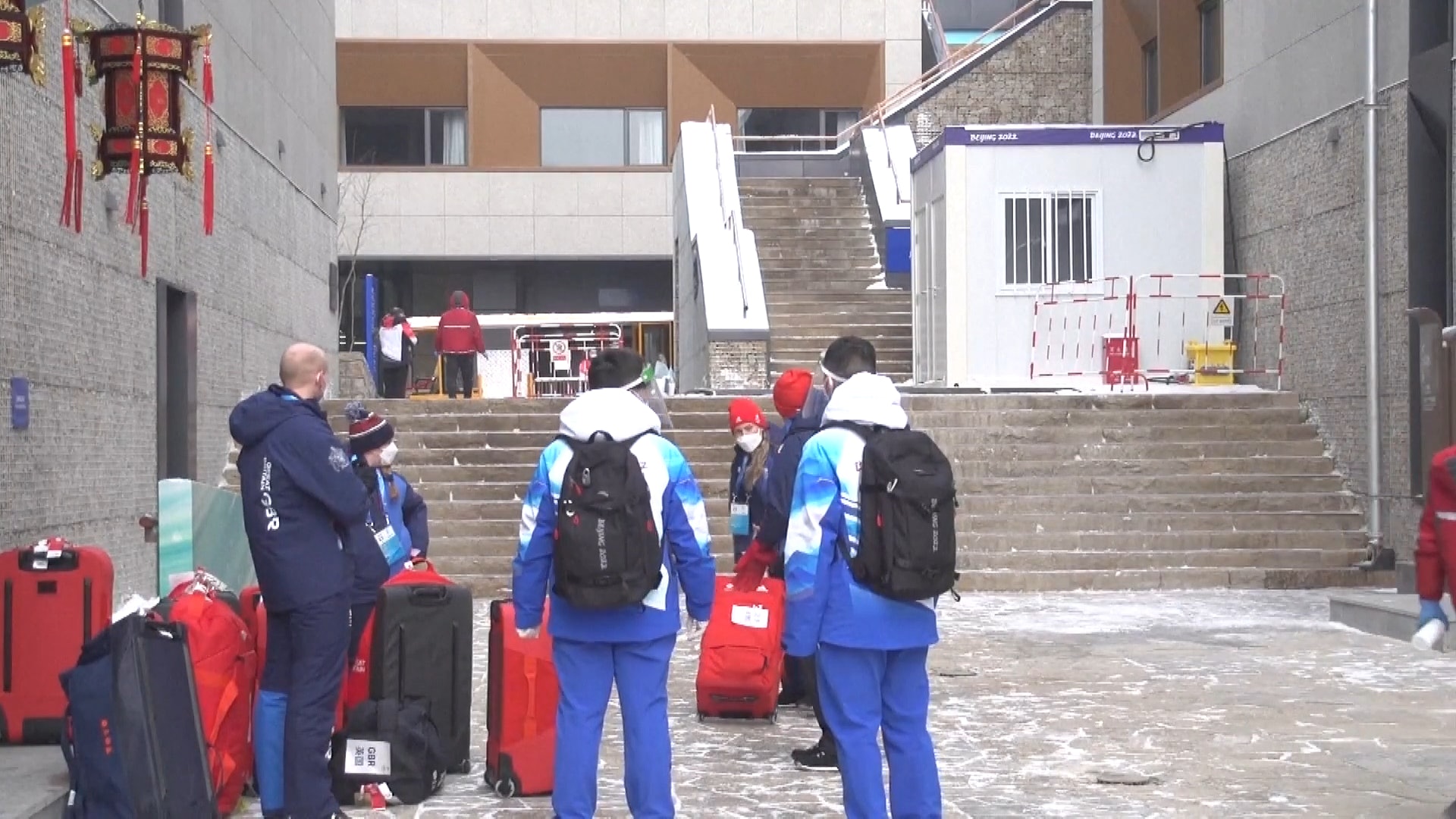 2022年1月23日,運動員及隨行工作人員入住北京延慶冬奧村。(視覺中國)