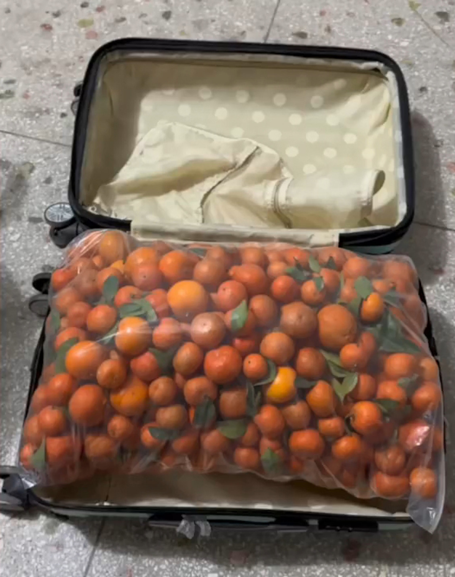 ; j" R, G. l! k/ F. F公仔箱論壇龍同學回應內媒,她放假時喜歡拍片分享,家中種了很多柑桔,發到朋友圈後有許多同學回覆,叫她開學後帶點回去試試。家人也建議她帶點讓同學吃,便想到用行李箱親自帶,還能省點郵寄的費用。