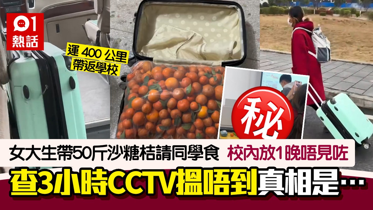 : R9 K9 W' f# z: I+ Q( w1 k; _TVBNOW 含有熱門話題,最新最快電視,軟體,遊戲,電影,動漫及日常生活及興趣交流等資訊。重達50斤的沙糖桔居然不翼而飛!貴州1名女大學生回老家後,特意帶了一整個行李箱、50斤的砂糖橘(沙糖桔),踏上400公里路途回到遵義的學校打算分享給同學吃。她回校後將行李箱放在教學樓教室的門後,未料翌日整篋不見了,通知校方翻查了3小時的閉路電視都找不到桔子的去向。TVBNOW 含有熱門話題,最新最快電視,軟體,遊戲,電影,動漫及日常生活及興趣交流等資訊。. ^# J5 {. X& D2 |2 T: n& n' j