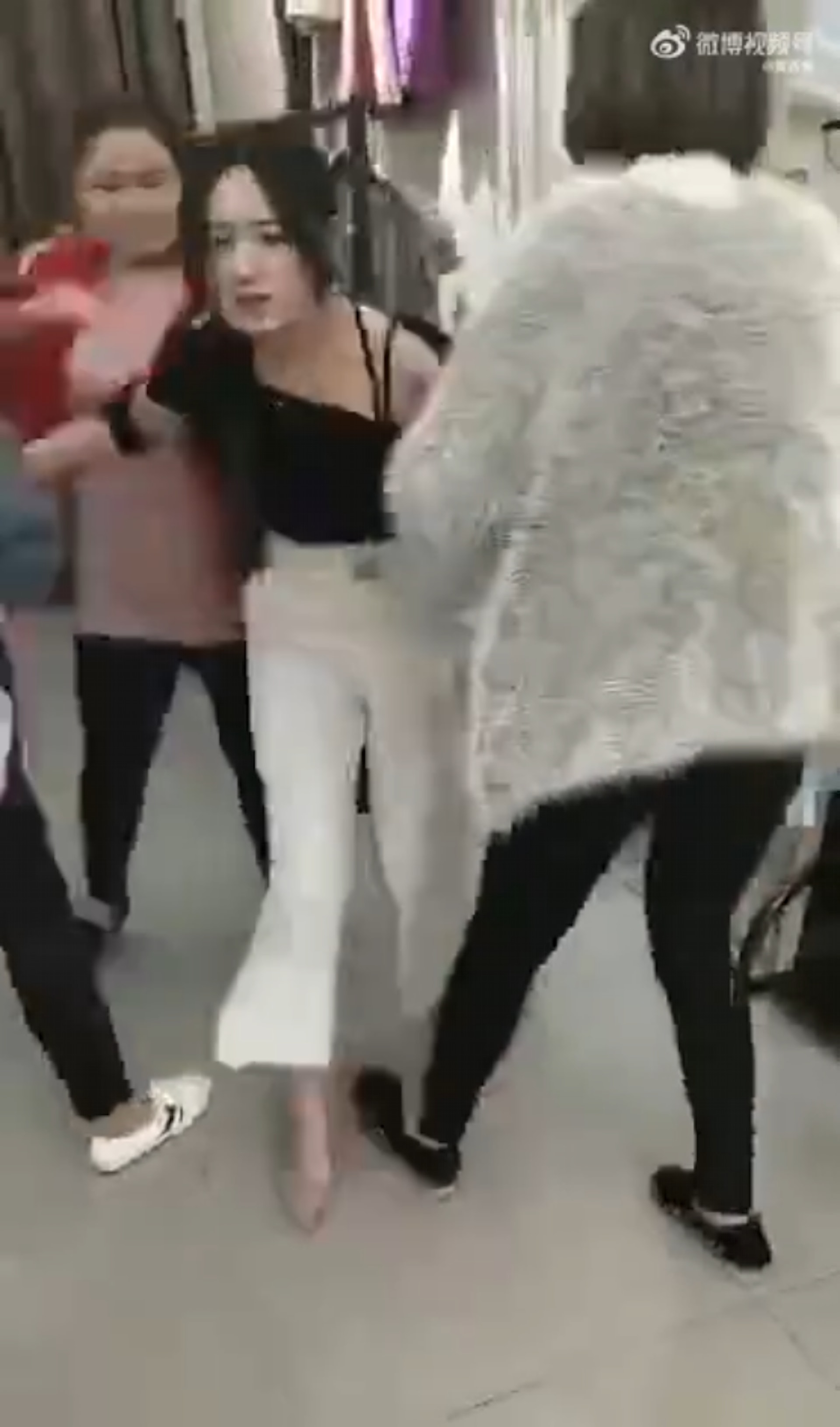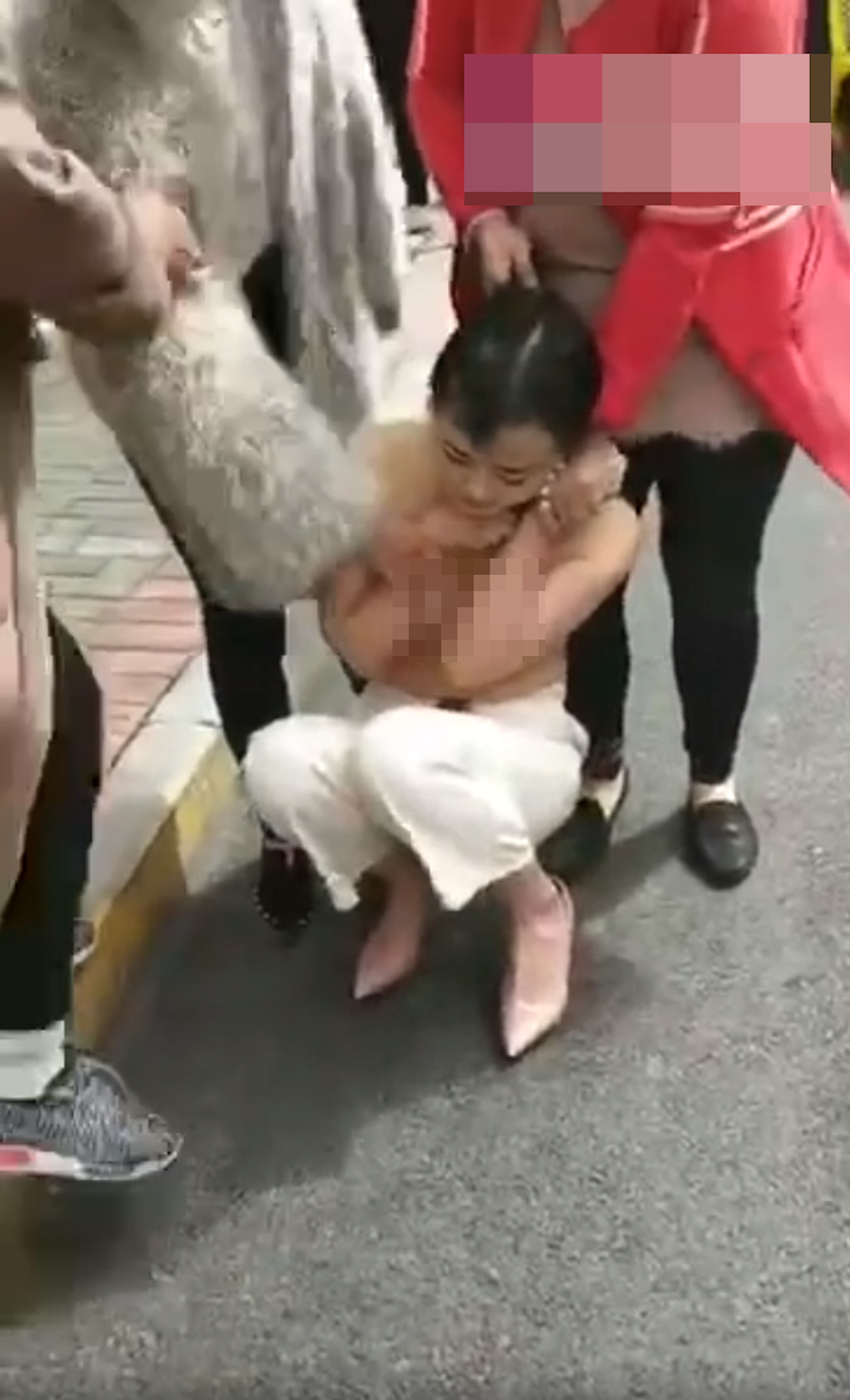 6 M( j; @2 a" [4 b4 k, ]# v有被指控為小三的妙齡女子,遭正宮攜姐妹扒衣服剪頭髮。(影片截圖)