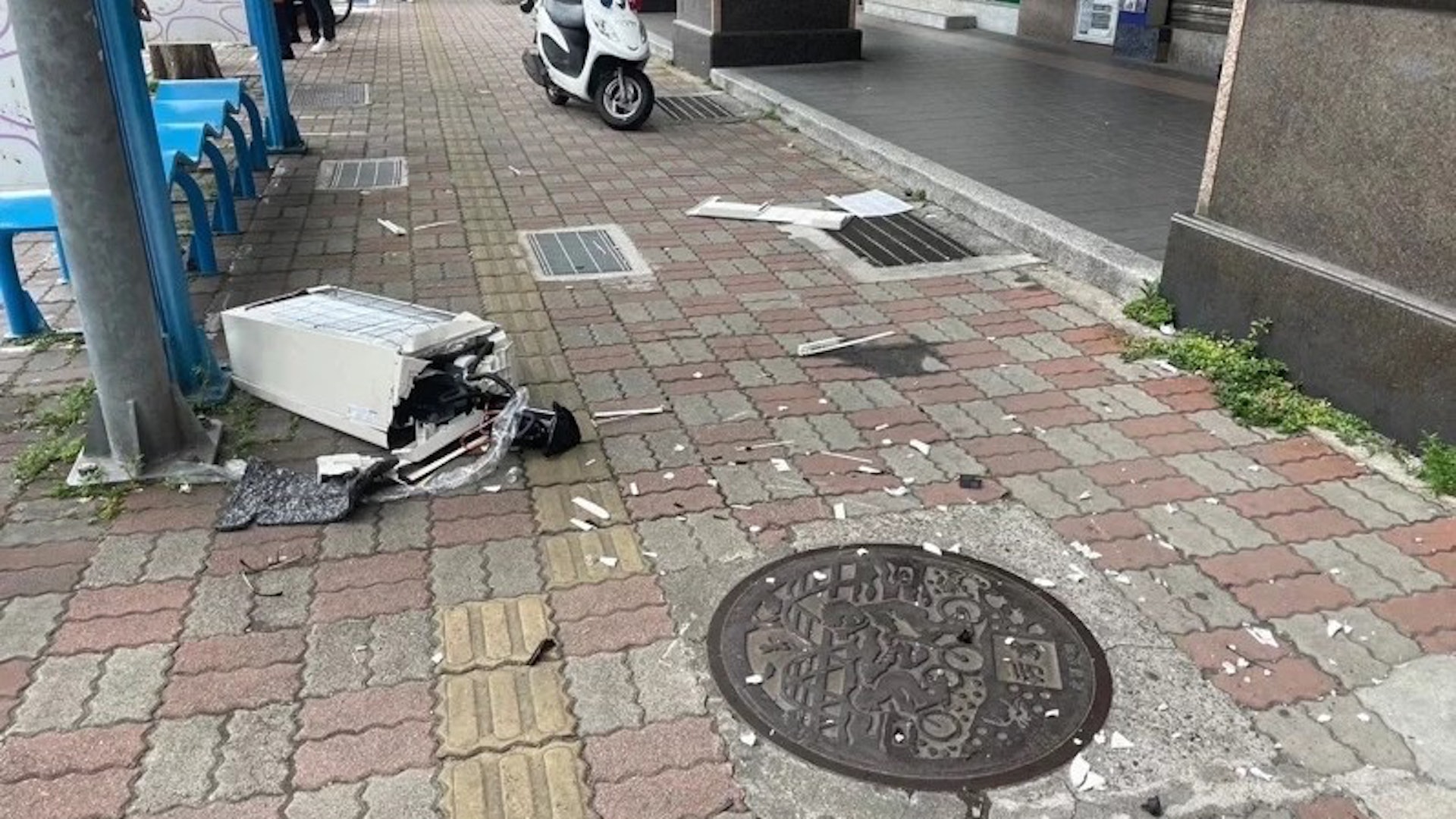 ! U, _2 b7 R6 s% H0 o6 ]公仔箱論壇板橋21歲女大生等公車遭冷氣猛砸身亡。(影片截圖)