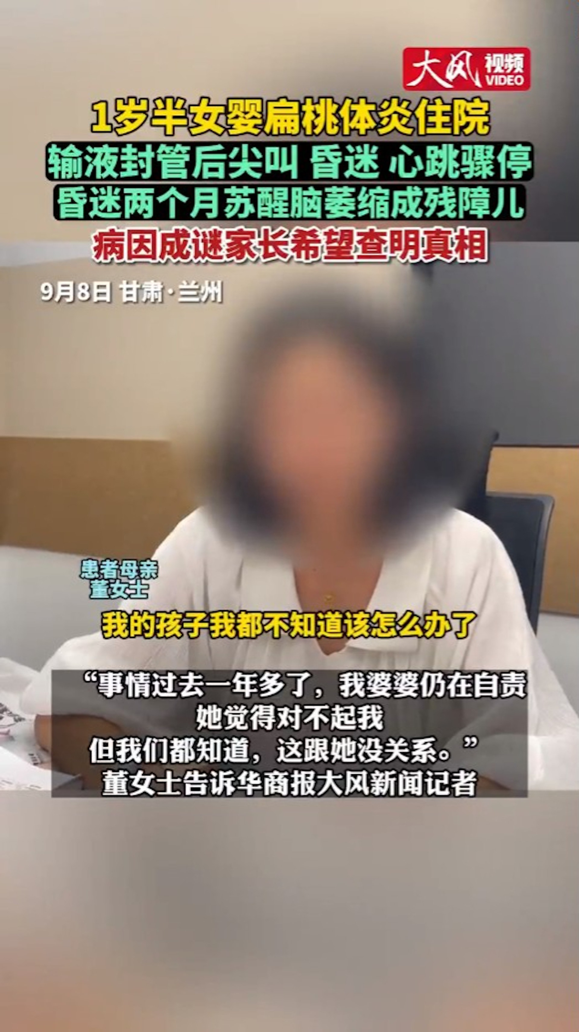 7 o! g" f1 e7 Y: Y4 {提及孩子接受治療的過程,母親深呼吸後,仍止不住全身顫抖。(微博截圖 / @大風新聞)) i8 a- w; v* ~- E