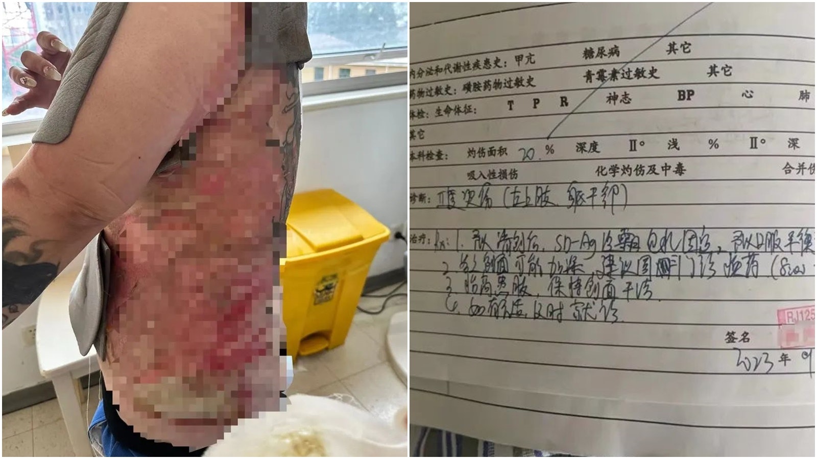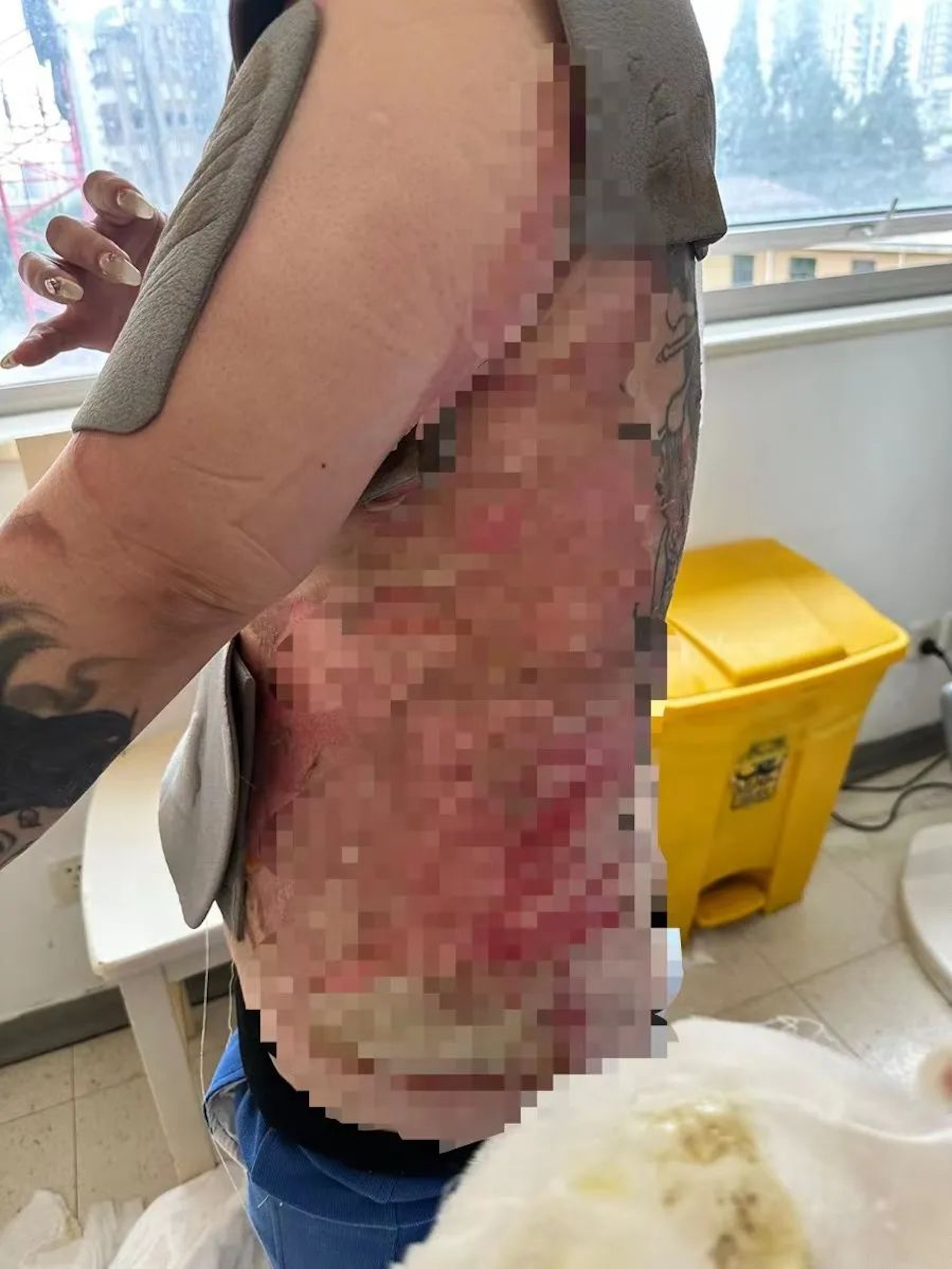 $ {7 C4 V/ } ^; |8 I公仔箱論壇據瑞金醫院的灼傷門急診病史首頁顯示,費女灼傷部位是左上肢、軀幹合併傷,經檢查灼傷面積為20%,診斷為2度燙傷(左上肢、軀幹部)。顧先生透露,是當時技師不慎將酒精撒到了女友的背上才導致其受傷。而且2度燙傷只是初步診斷,在住院的第一天晚上,費女高燒39度,血液樣本出現白血球高,主任醫生判斷為3度燙傷,面積20%,「有兩處地方非常嚴重,而且出現了高燒和驗血指標偏高,隔天一定要植皮手術」。