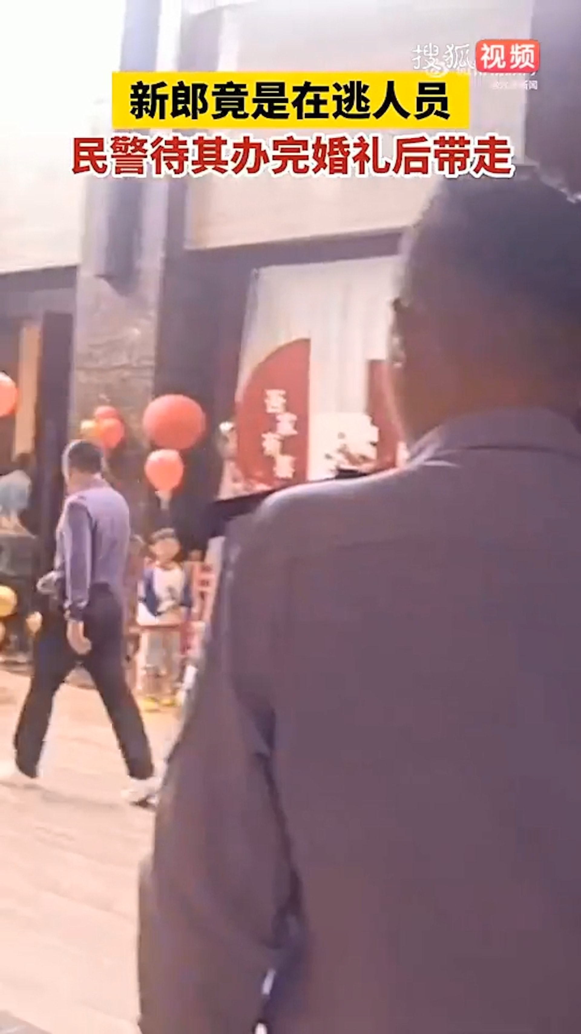 內媒報道,10月5日湖北宜昌公安趕到一場婚禮拘捕新郎,他真實身份是逃犯。執法片段所見,警方到場後,查問在場人士一對新人在哪,對方求情指現場太多親友。警方指「(如果)我們不是考慮到你們情況,我們就直接進去抓人了」,最後等新郎完成婚禮後再作拘捕。