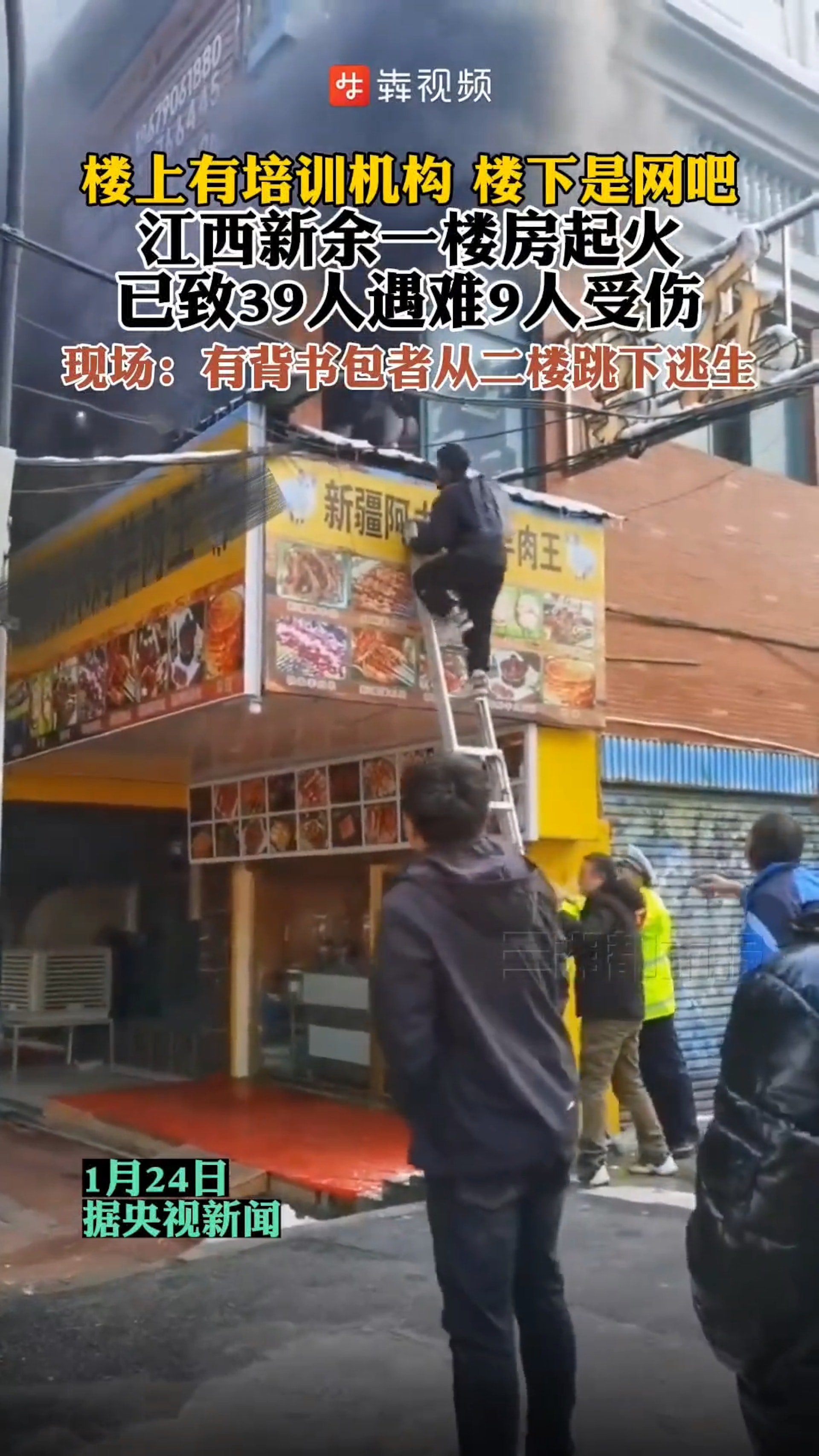 江西新余渝水區天工南大道佳樂苑沿街店鋪地下一層24日(周三)發生大火,現場濃煙滾滾,火勢兇猛,死傷慘重。多段驚險逃生片段曝光,可見有多名受困者從二樓窗戶跳到鋪設在地下的床墊上,由民警在下方逐一接住;又可見有多名背著背包的年青受困者爬梯子到地下逃生,期間有人拉著路邊電線桿的電纜線摔下樓,險象環生。tvb now,tvbnow,bttvb3 `9 I( L* n7 E( r; j+ _! H7 m+ F