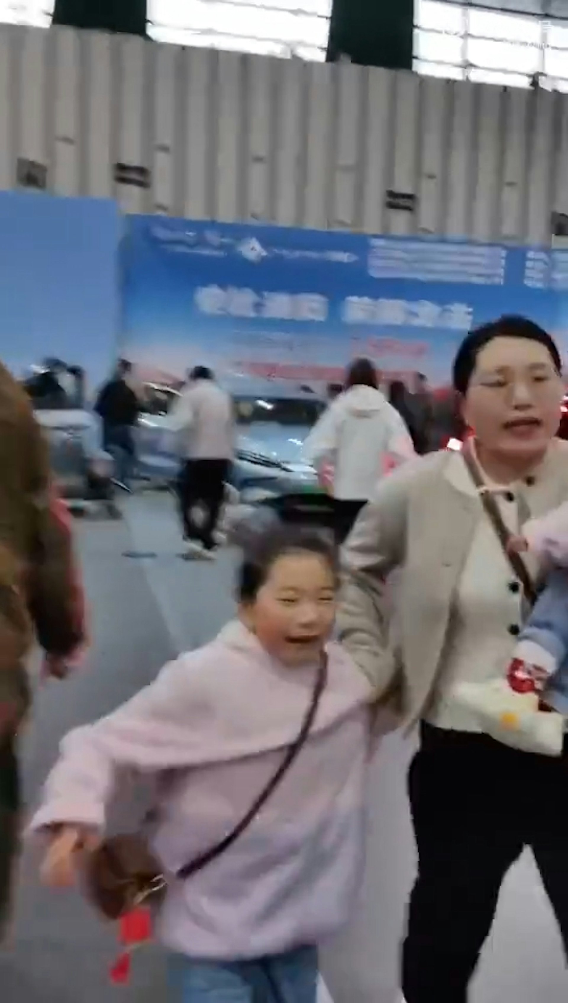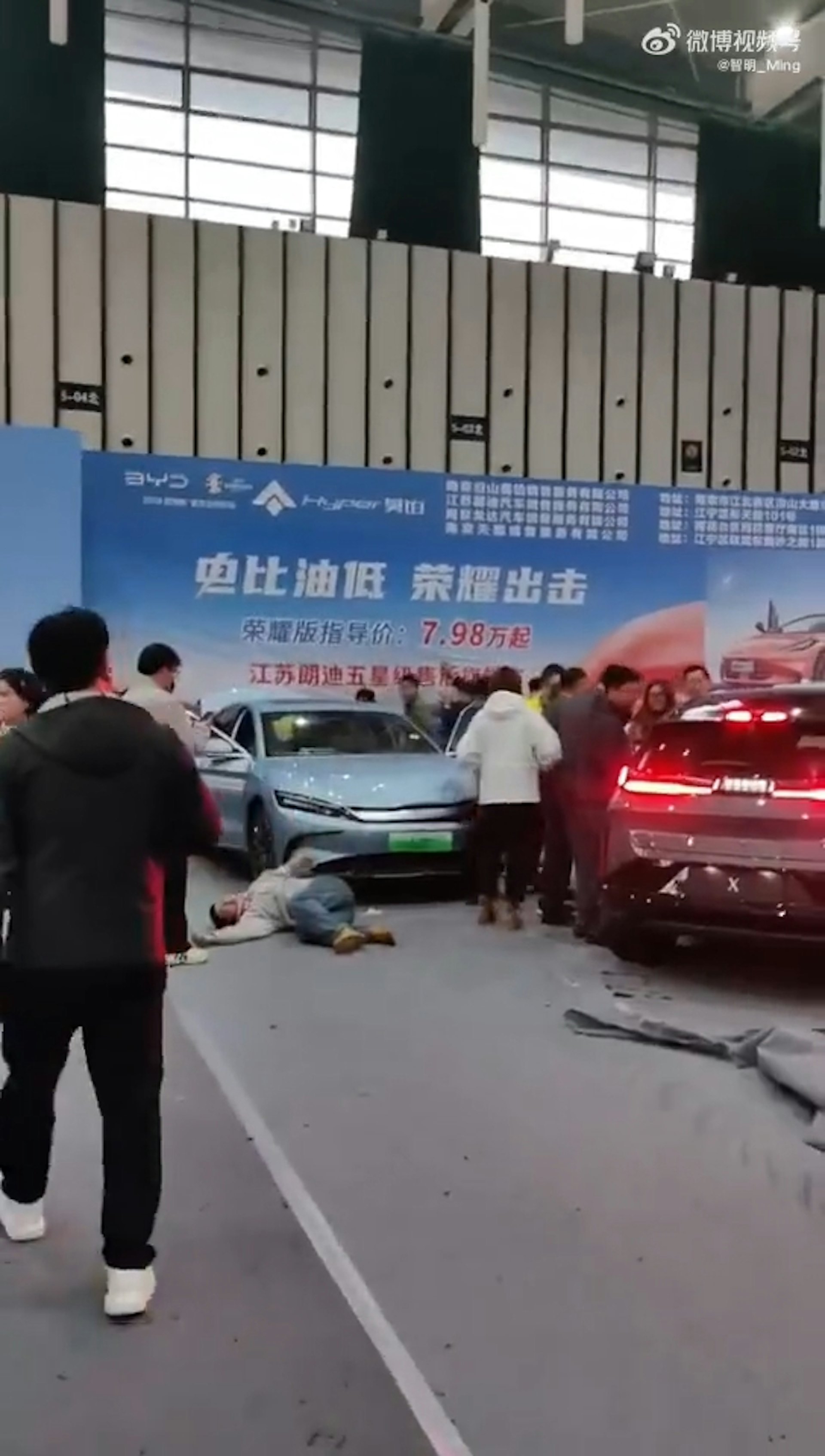 一位自稱男童家屬的男子敲打車窗,質問車內人員為何撞人。在影片中,有人稱:「展會車輛怎麼可以動呢?」「肇事人員已經被關到小房子裏了」。受傷5名觀眾均無生命危險( O' o1 v" m; j% F( T' o