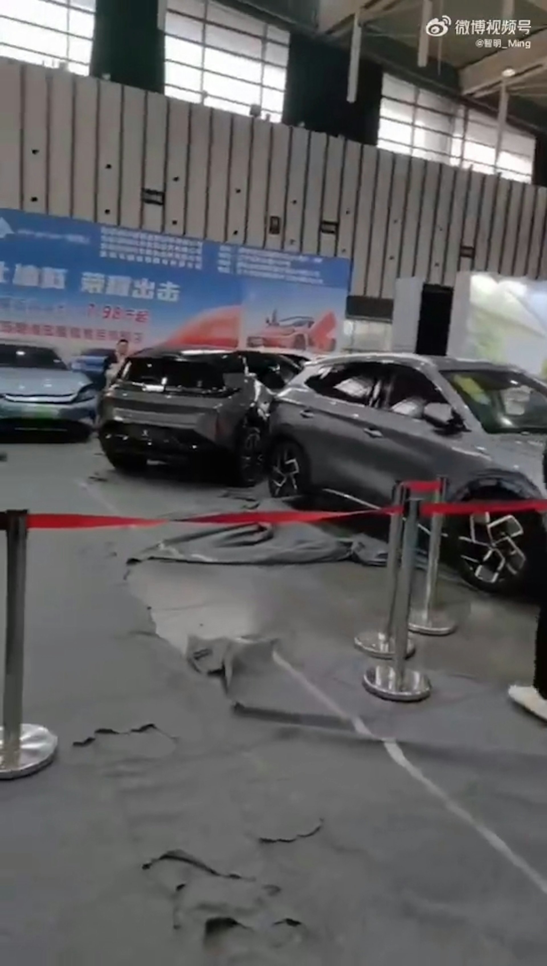 ! W5 t. P* U% j2 e1 N9 \9 L在2024南京國際新能源汽車展覽會上,吉利汽車旗下電動車品牌極氪(Zeekr)的一輛展覽車輛突然啟動,撞傷多人,現場一片混亂。(影片截圖)