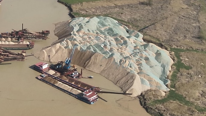 截至督察進駐,相關企業累計非法採砂1903萬噸,挖空孟姜垸洲灘面積2085畝,近四分之一個孟姜垸洲灘被挖空。現場督察發現,孟姜垸洲灘內堆存砂石約17.6萬噸。