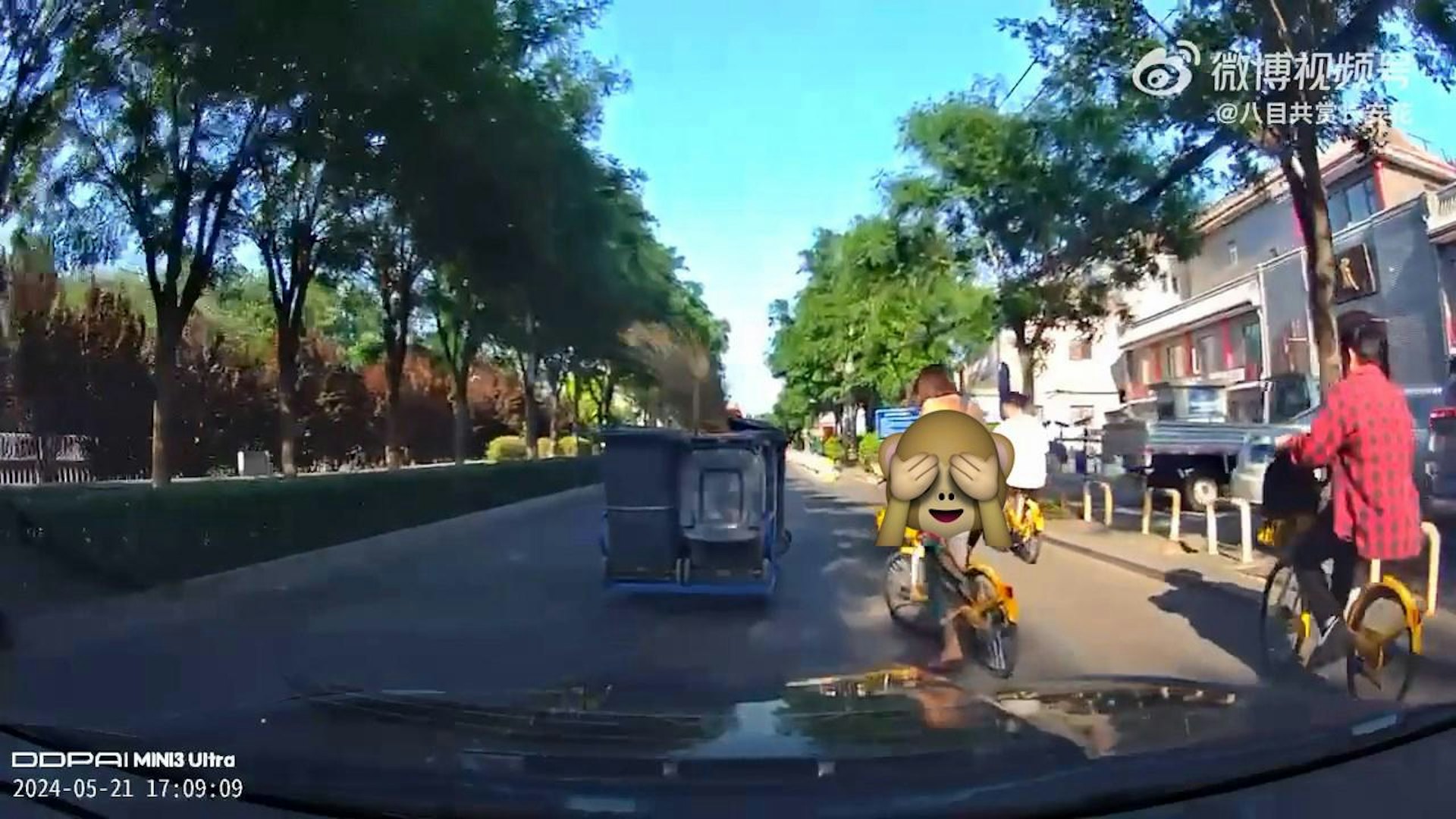 事發5月21日下午5時許,從微博流傳長40秒「車CAM(行車記錄器)」影片見到,穿彩色連身裙的女生,正騎單車在馬路行駛,裙擺隨風往後輪方向飄揚,其腳踏幅度之大看來略顯費力。