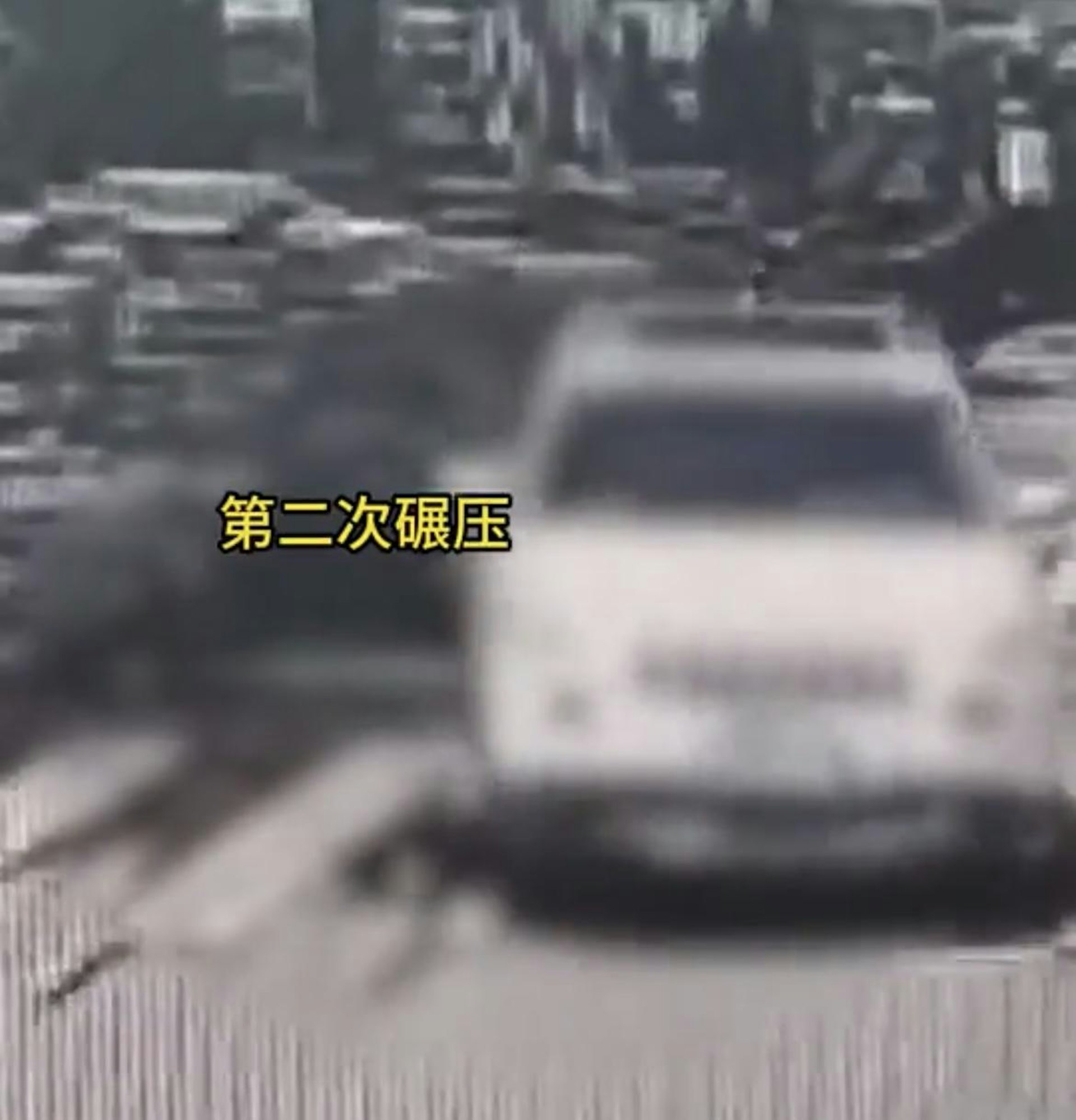 ! I- v, U1 w F/ E1 W) b8 U9 R* f後又對女子進行二次碾壓。(影片截圖)