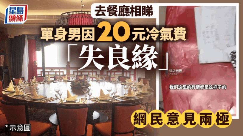 江西有男子質疑飯店另收20元冷氣費,導致相睇失敗。# f0 A0 i% h' X
