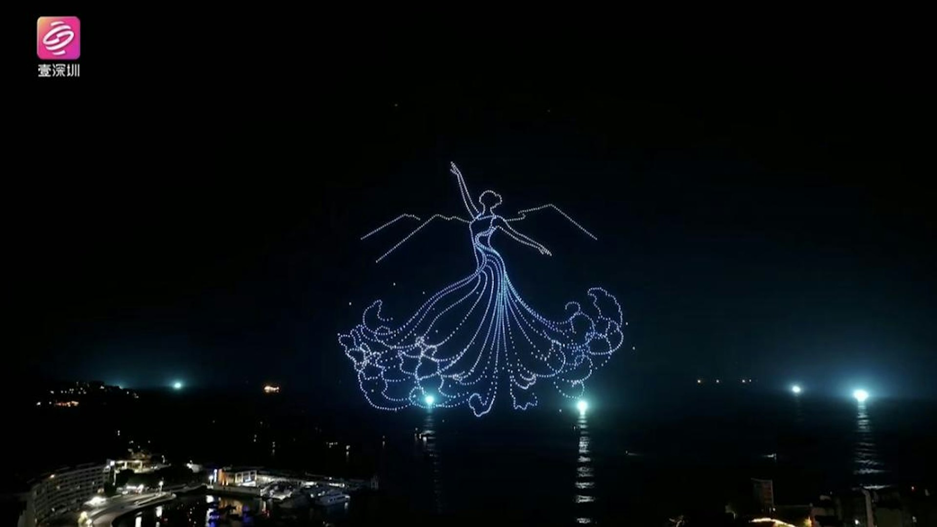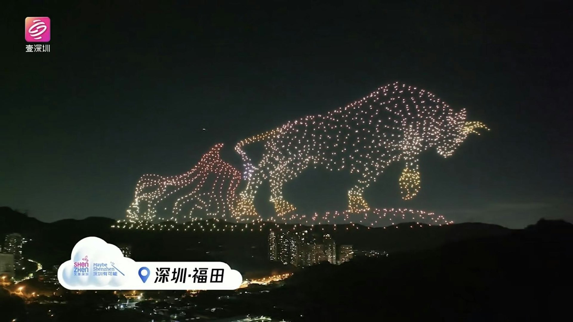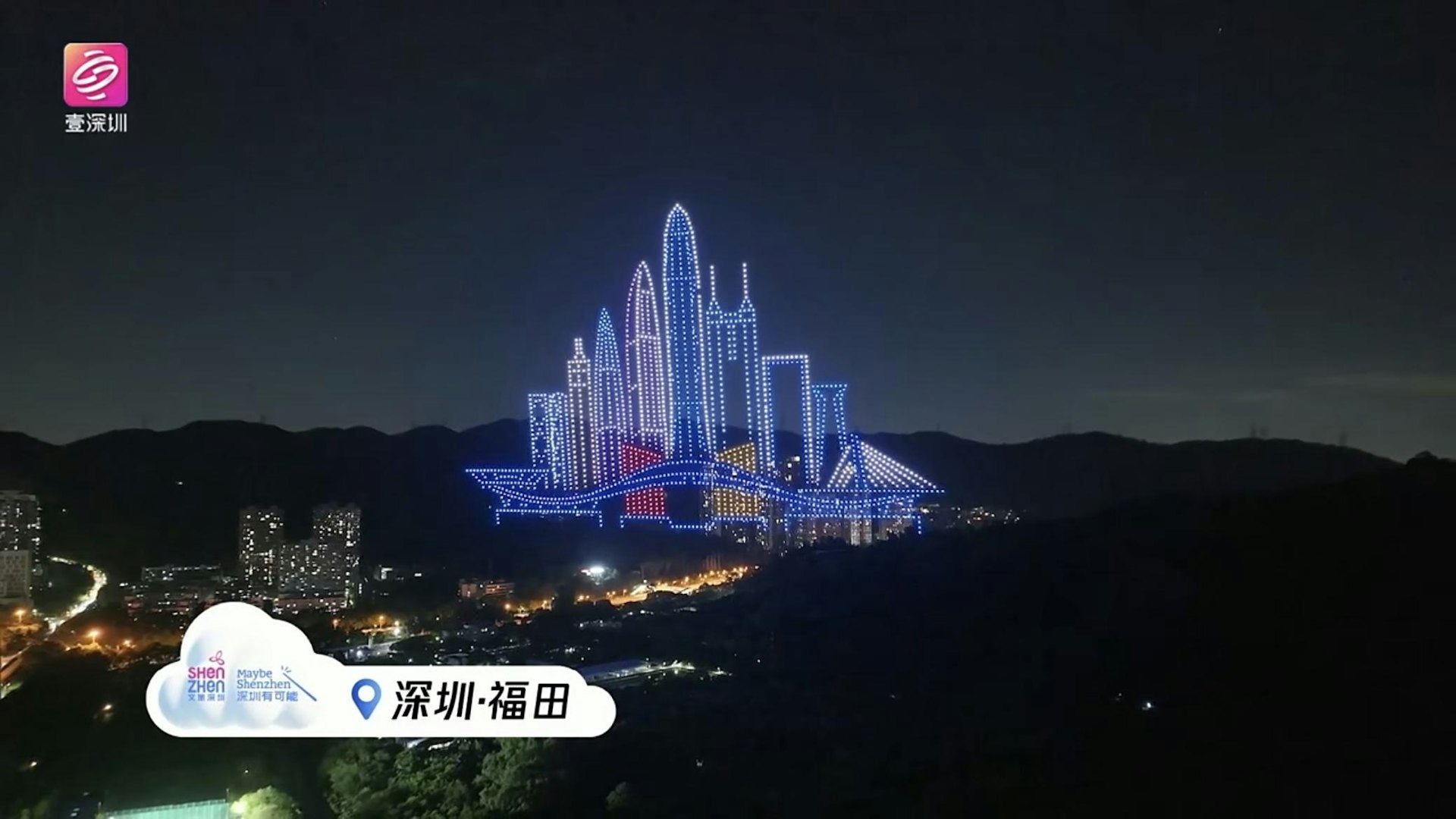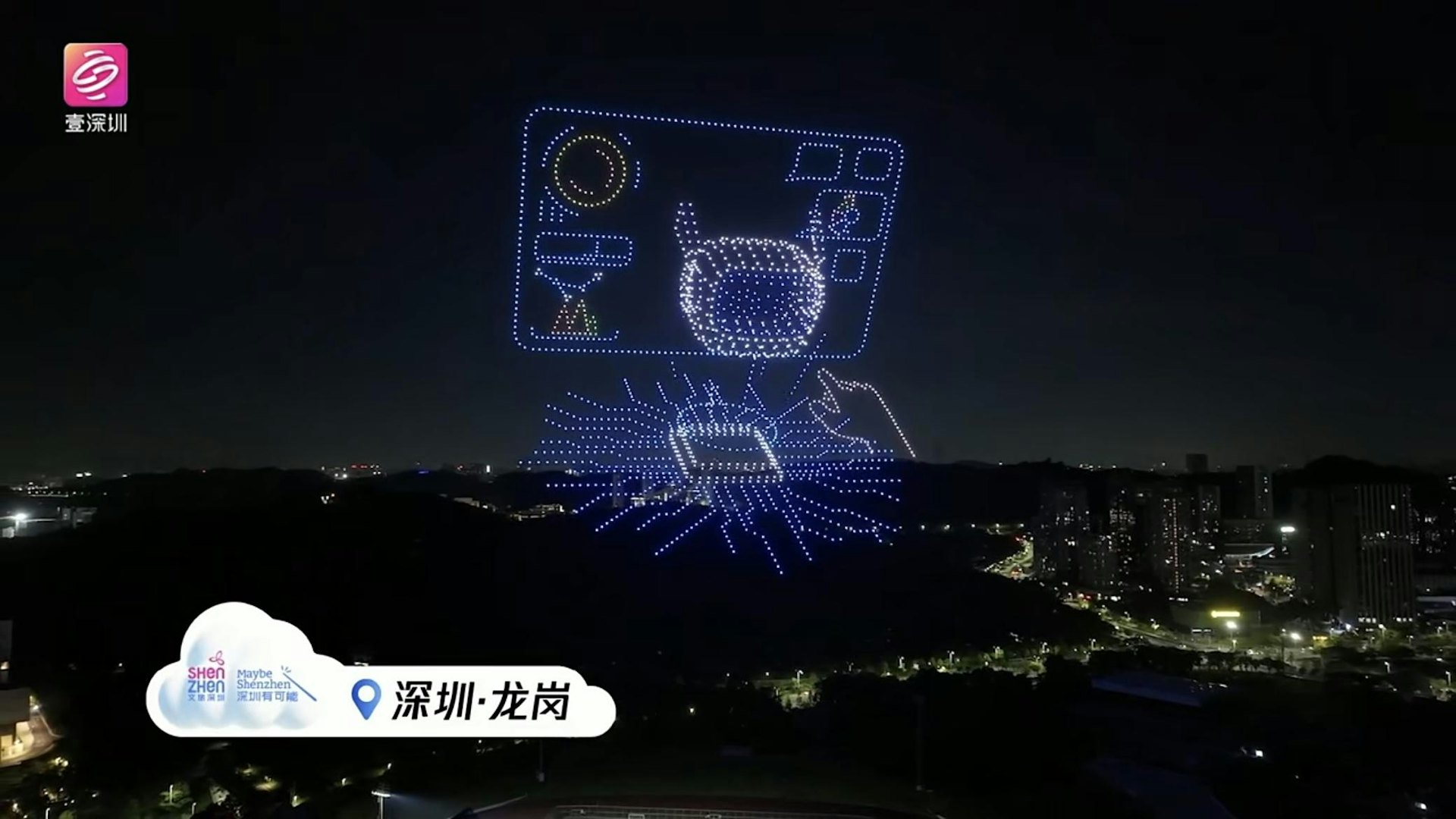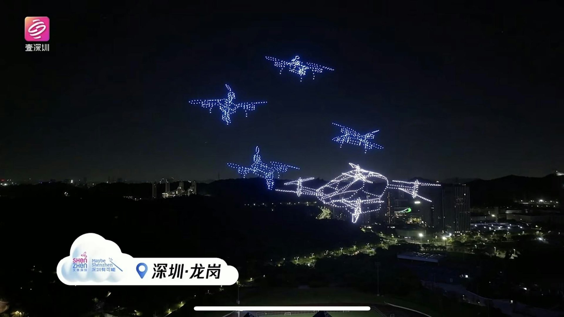 + k1 n. J' G8 ~* \' O$ s. \% `tvb now,tvbnow,bttvb深圳「天空之城 大有可能」全城萬架無人機表演。(直播截圖)