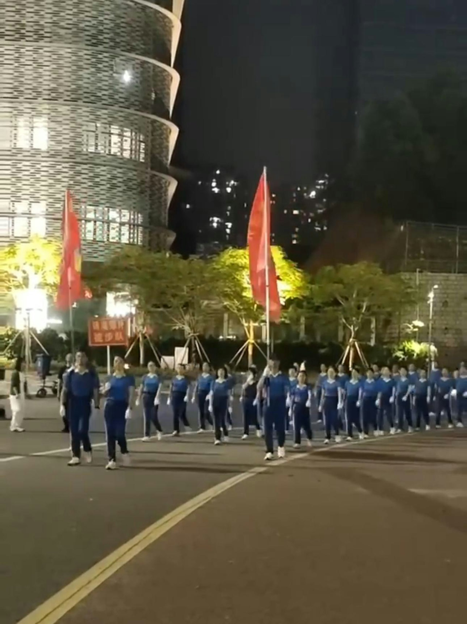 0 O4 v* n7 O8 u1 p這位目擊者稱,廣場每天都有六、七個徒步團隊進行活動,這些「暴走團」主要由退休人士組成,隊伍整齊有序,通常由領隊舉旗帶領,伴隨音樂在廣場上行進。