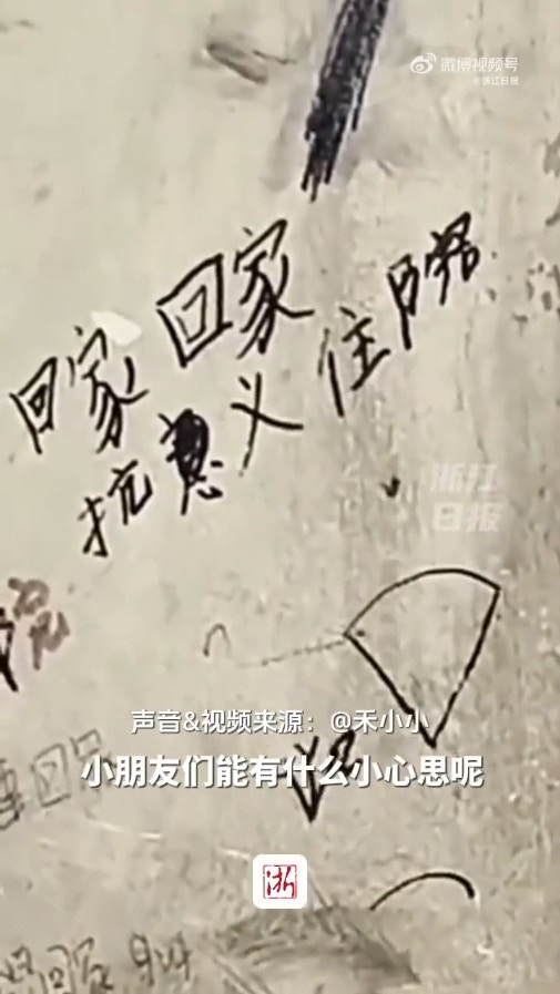 這些小朋友由於身體因素,長期待在醫院治療,不能像一般的孩子一樣正常上學、回家,因此他們在醫院的牆上抒發心情,寫下:「我想回家」、「我要出院」、「我再也不要來這裡了」等字句。(微博@浙江日報)
