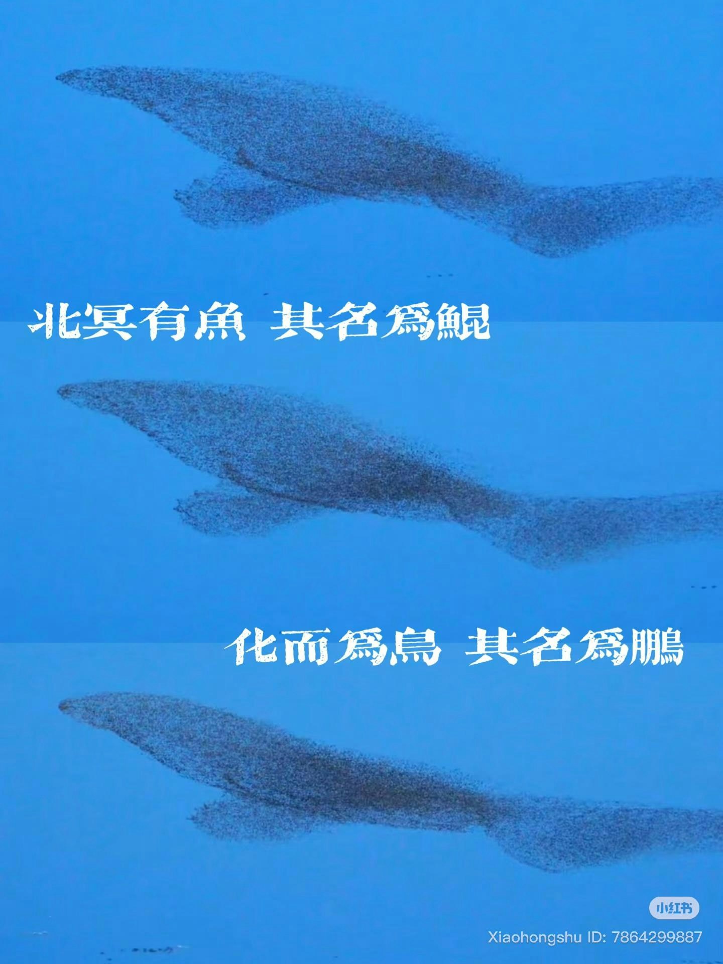 莊子《逍遙遊》寫道,「北冥有魚,其名為鯤。鯤之大,不知其幾千里也;化而為鳥,其名為鵬。鵬之背,不知其幾千里也,怒而飛,其翼若垂天之雲」。(小紅書)
