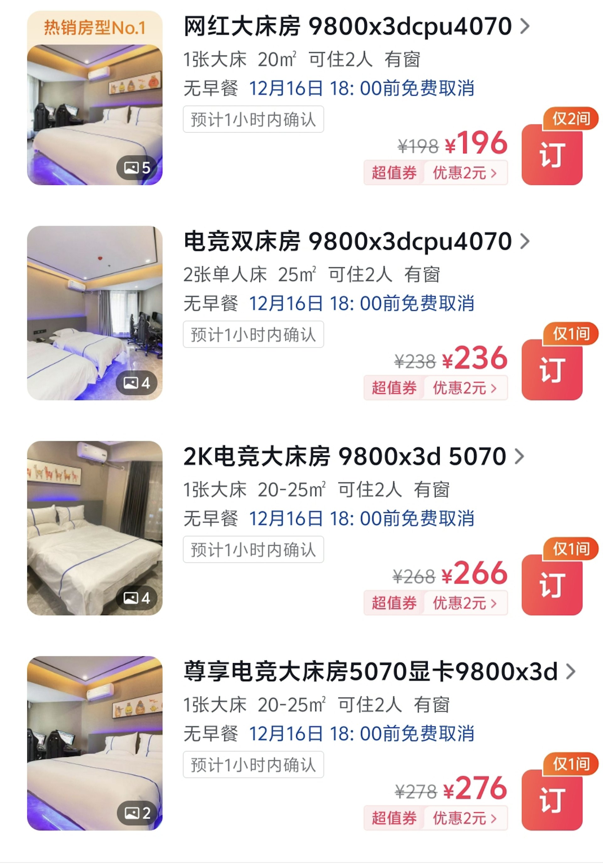 * j; C3 p8 }+ r) x; m4 n% X; U: |tvb now,tvbnow,bttvb12月16日,涉事酒店的房價。(抖音@長春雲尚電競酒店)