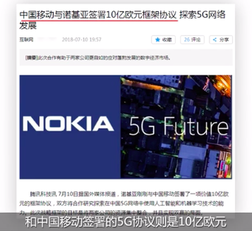 2018年7月,诺基亚和美国运营商T-Mobile达成一笔35亿美元的协议,和中国移动签署的5G协议则是10亿欧元,与其他国家运营商也是签了不少5G协议的。