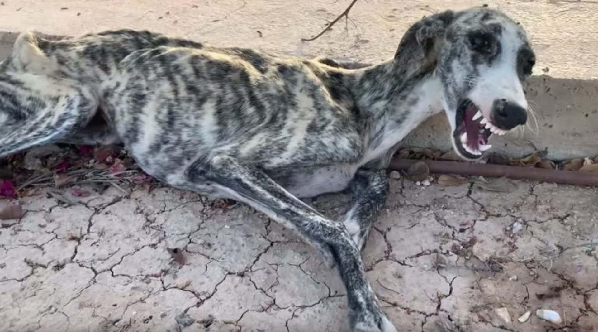 一隻狗狗在路邊哀嚎,牠實在瘦得令人心痛。(FB@Galgos del Sol)