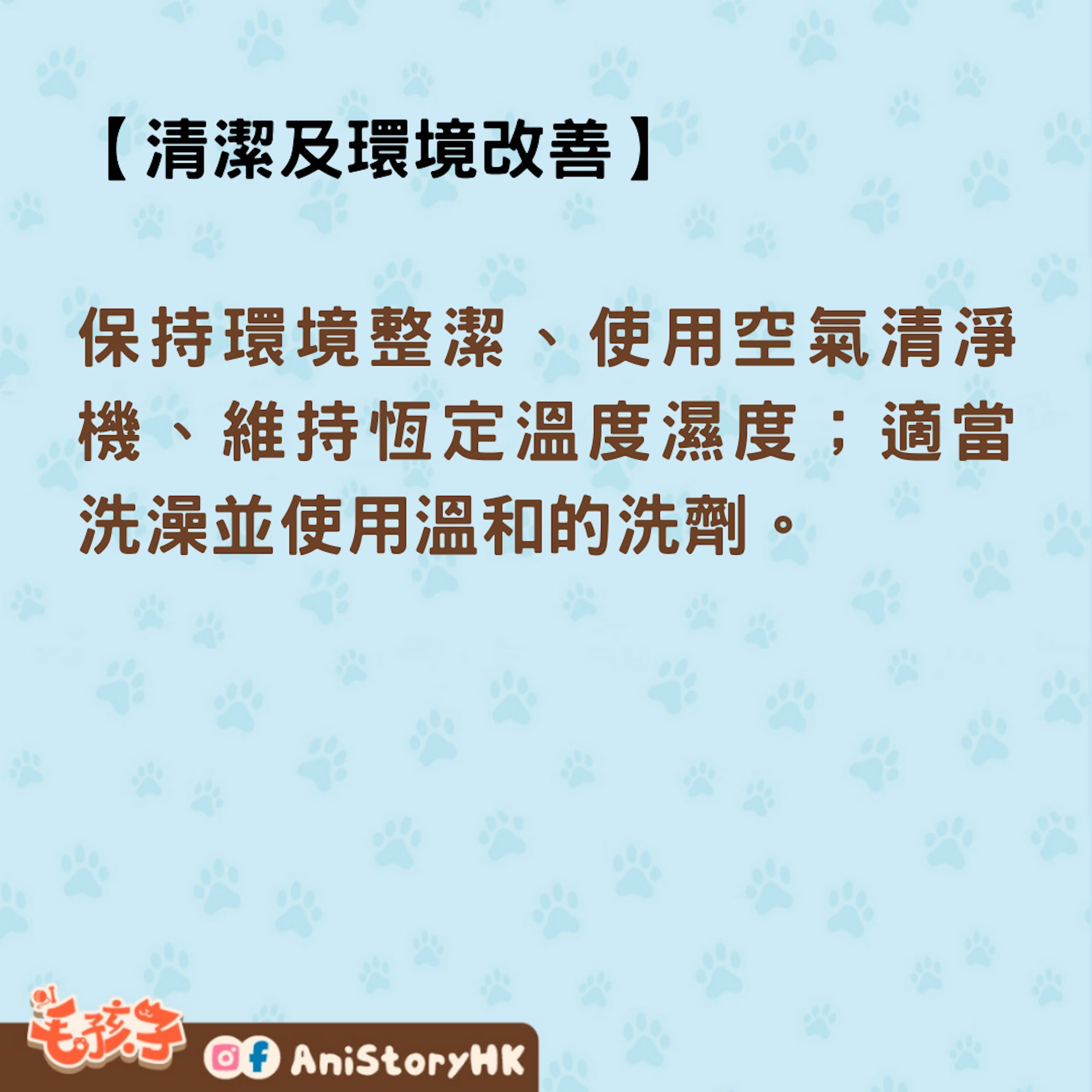 保持環境整潔、使用空氣清淨機、維持恆定溫度濕度;適當洗澡並使用溫和的洗劑。