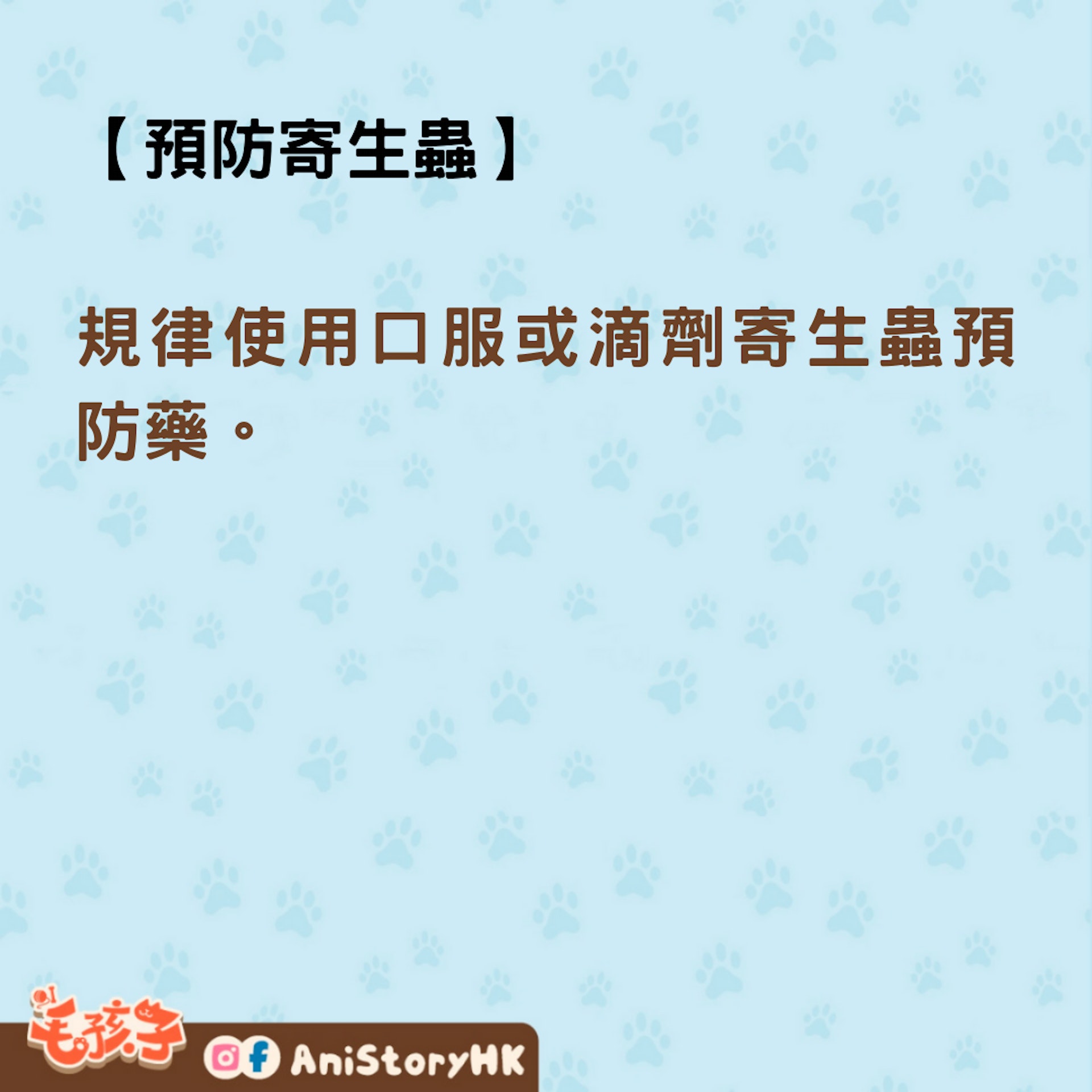 規律使用口服或滴劑寄生蟲預防藥。