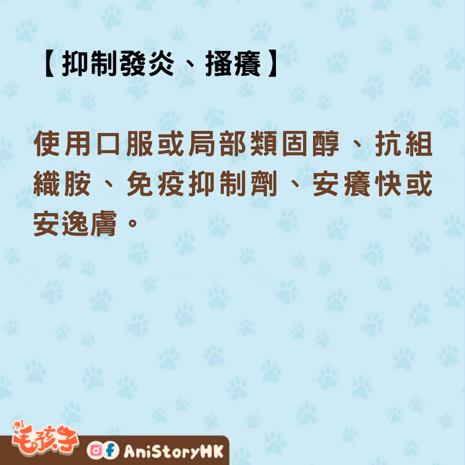 使用口服或局部類固醇、抗組織胺、免疫抑制劑、安癢快或安逸膚。