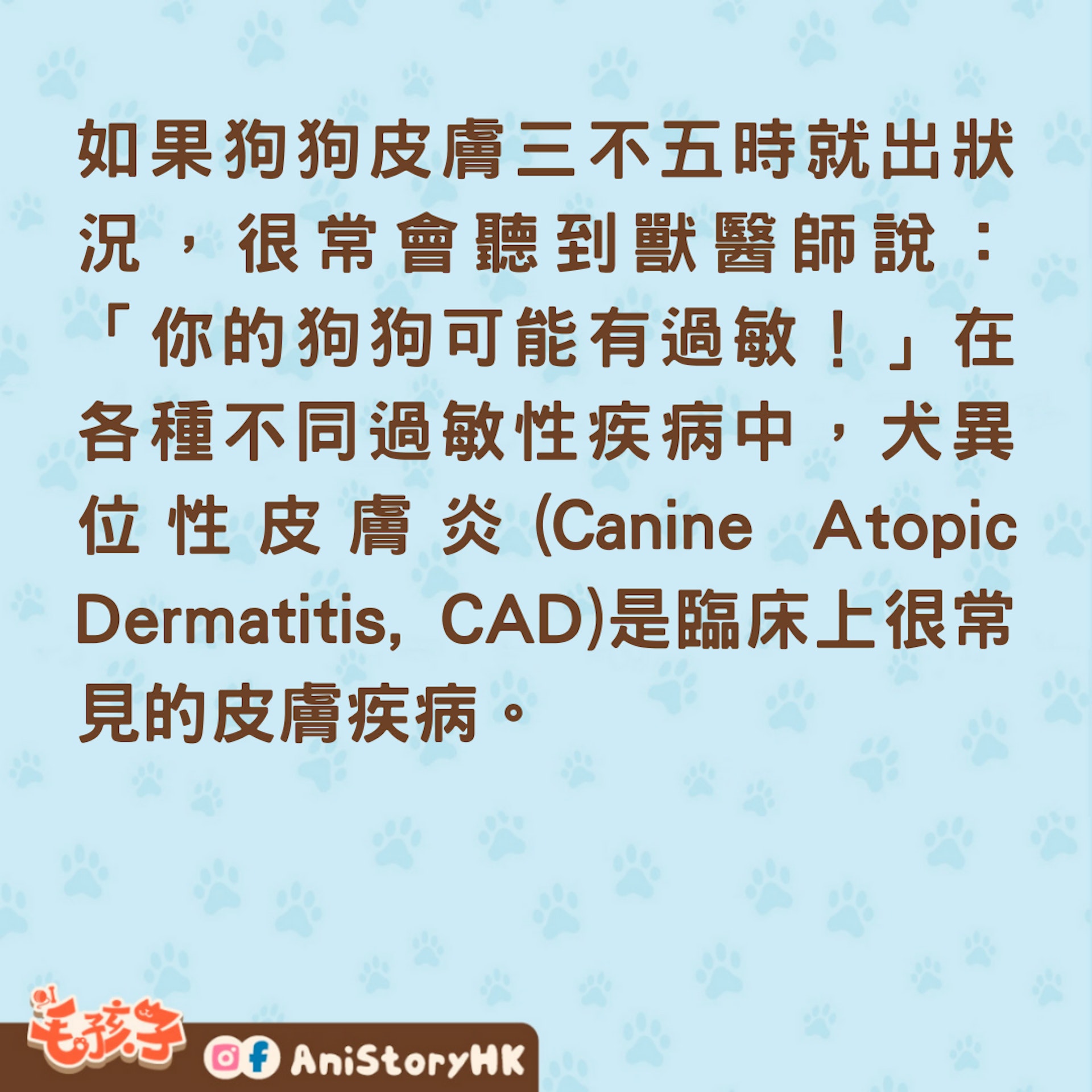 如果狗狗皮膚三不五時就出狀況,很常會聽到獸醫師說:「你的狗狗可能有過敏!」在各種不同過敏性疾病中,犬異位性皮膚炎(Canine Atopic Dermatitis, CAD)是臨床上很常見的皮膚疾病。