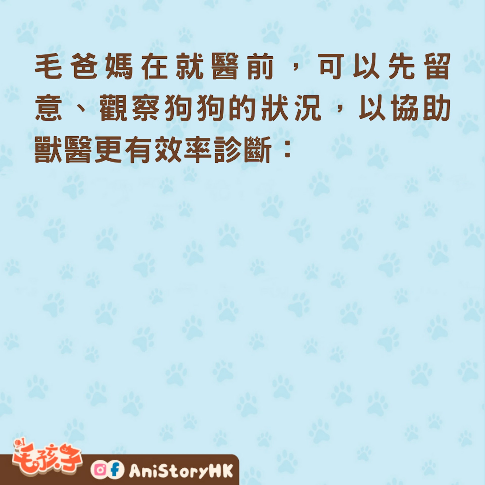 毛爸媽在就醫前,可以先留意、觀察狗狗的狀況,以協助獸醫更有效率診斷: