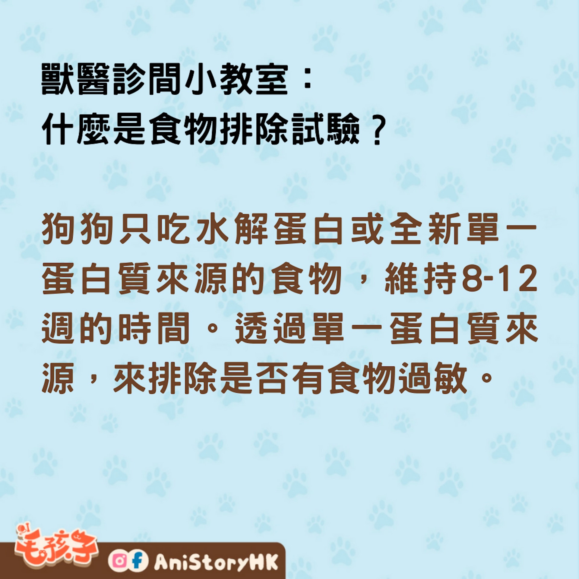 狗狗只吃水解蛋白或全新單一蛋白質來源的食物,維持8-12 週的時間。透過單一蛋白質來源,來排除是否有食物過敏。