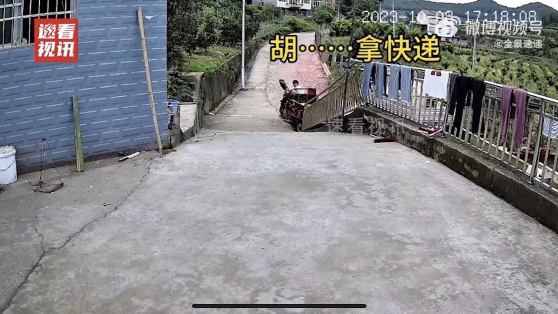在監控監控的影片中,可見有一名快遞員送貨到府,喊叫收件人出門拿快遞,不料驚見一隻狗飛奔庭院而出,搶走了快遞便轉頭回家。隨後,快遞員趕忙再喊「還有一個」,只見另有一隻狗跑出去也把快遞「搶」了回去。