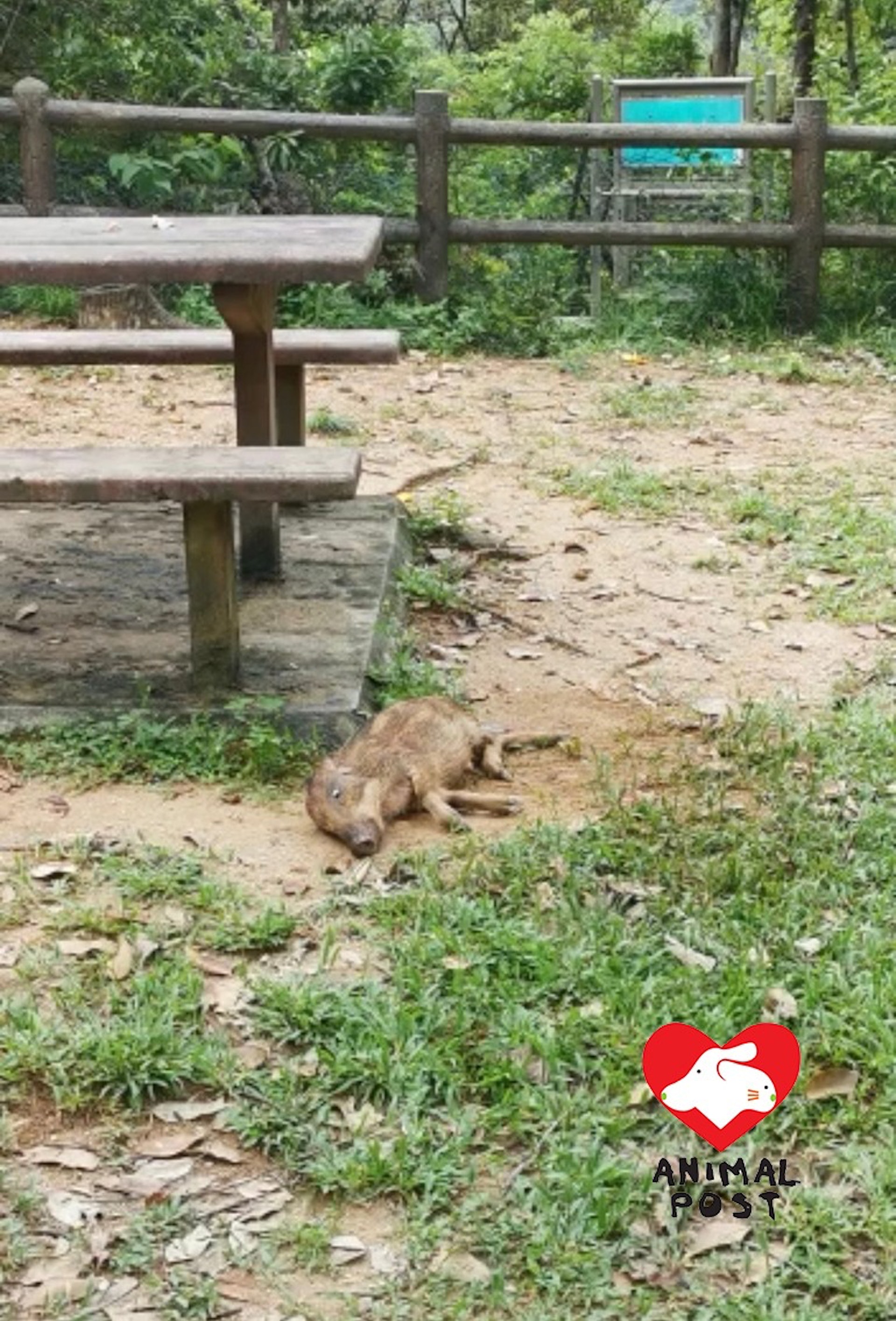 受訪者向《香港動物報》提供的照片可見一隻小野豬疑被狗隻圍攻後奄奄一息。(《香港動物報》提供)
