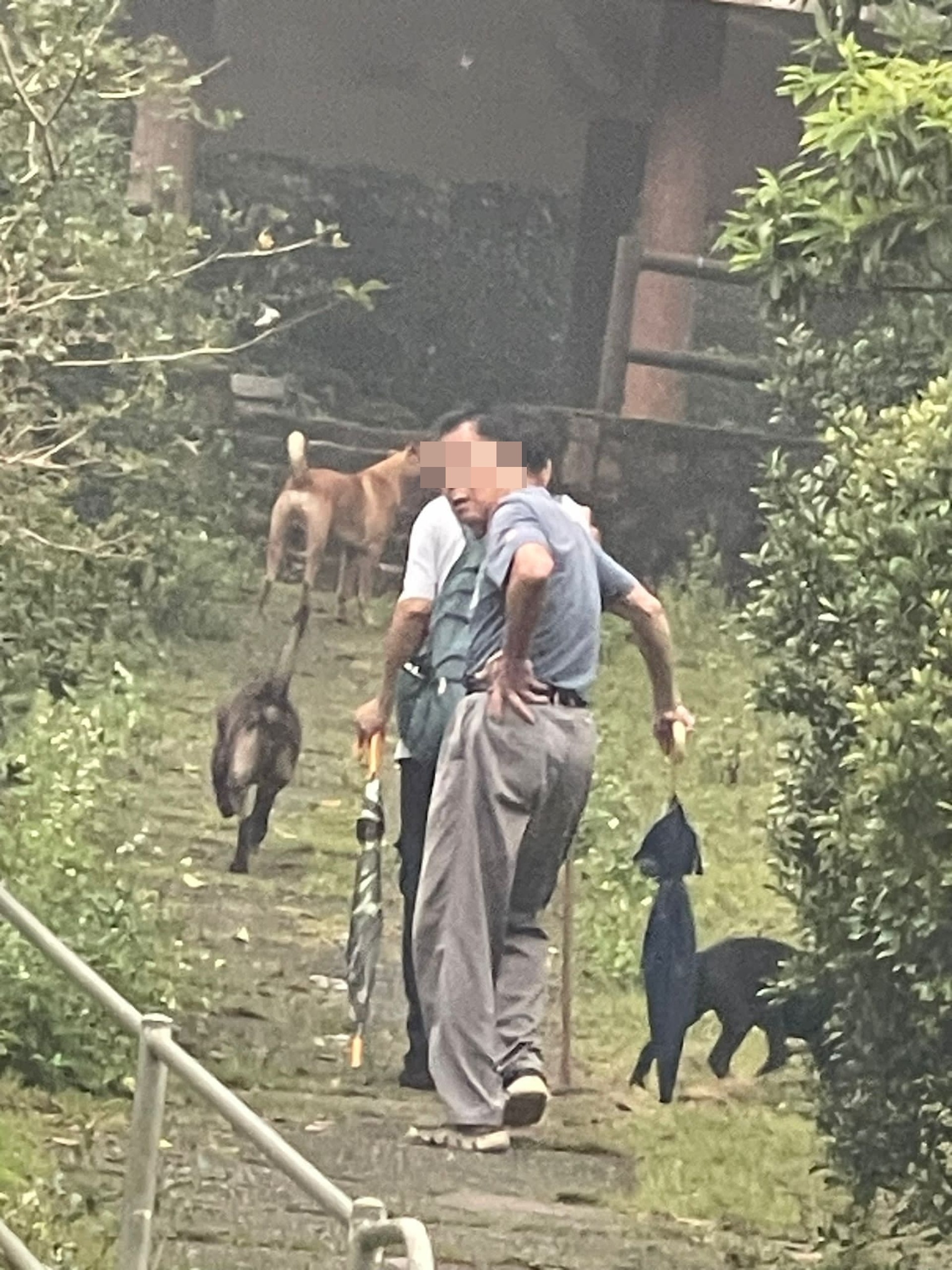 受訪者綜合行山人士提供的照片,照片中可見至少2名男子帶同數名狗在金山行山。(受訪者提供)