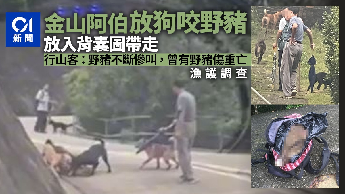 陳先生(化名)表示,他經常到馬鞍山的金山郊野公園行山,與其他行山人士均不時見到數名老翁帶同數隻唐狗行山。據知,曾有人目擊老翁將一頭野豬放入背囊企圖帶走,有行山人士見狀喝止,並稱會報警求助,將老翁嚇退。該頭野豬身上有被咬傷的傷口,奄奄一息,及後已傷重死去。
