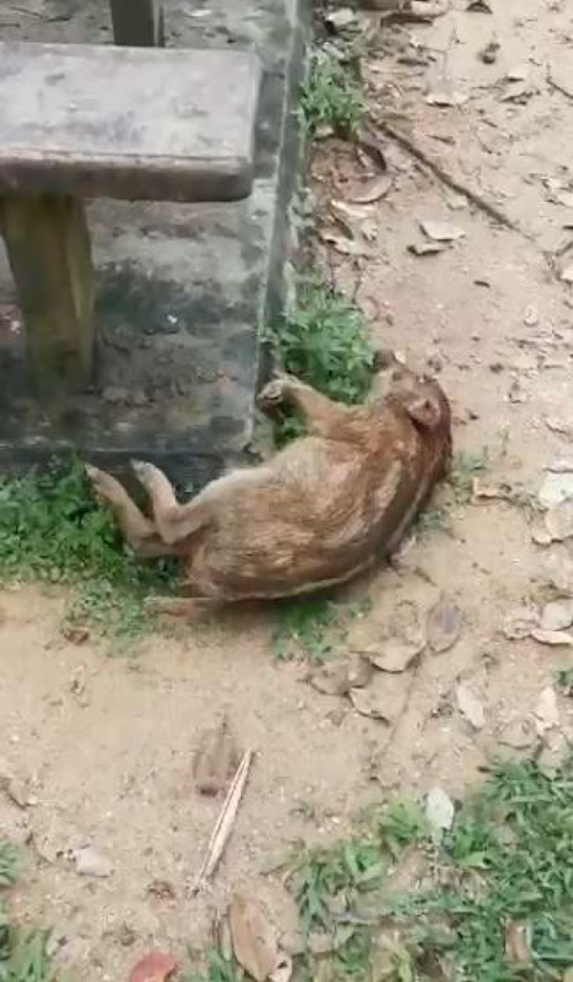 受訪者綜合其他行山人士提供的影片,可見一隻小野豬疑被狗隻圍攻後奄奄一息。(受訪者提供)