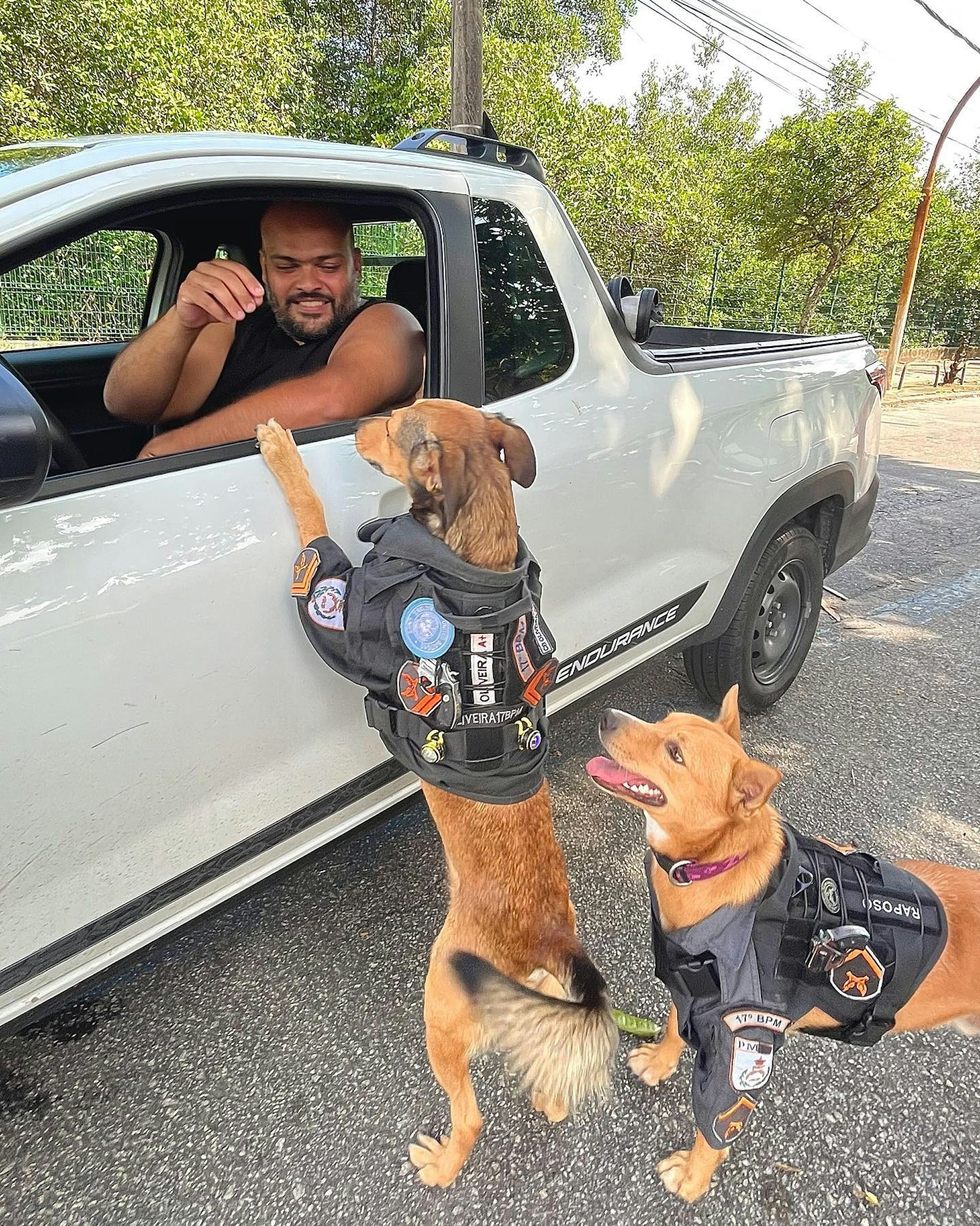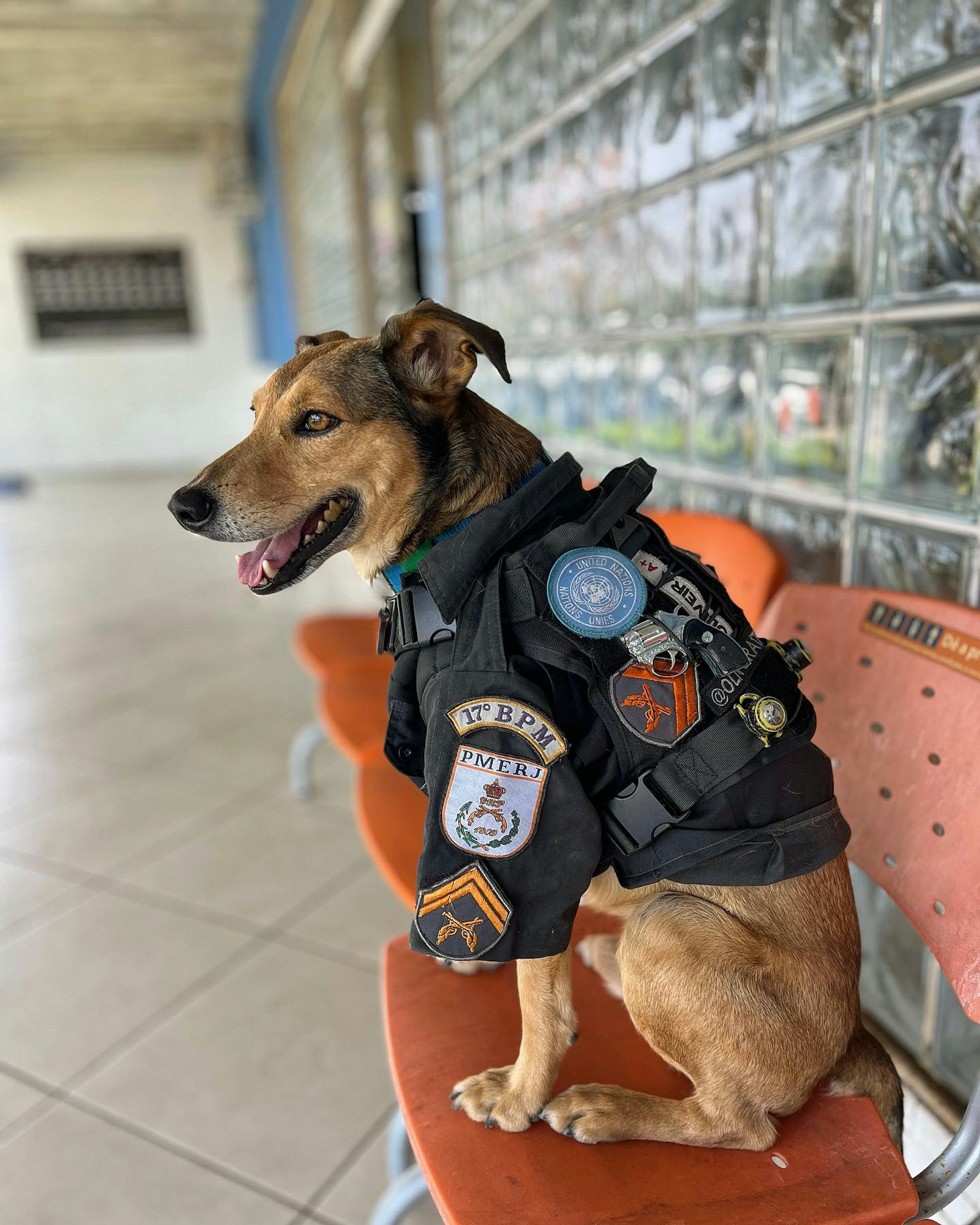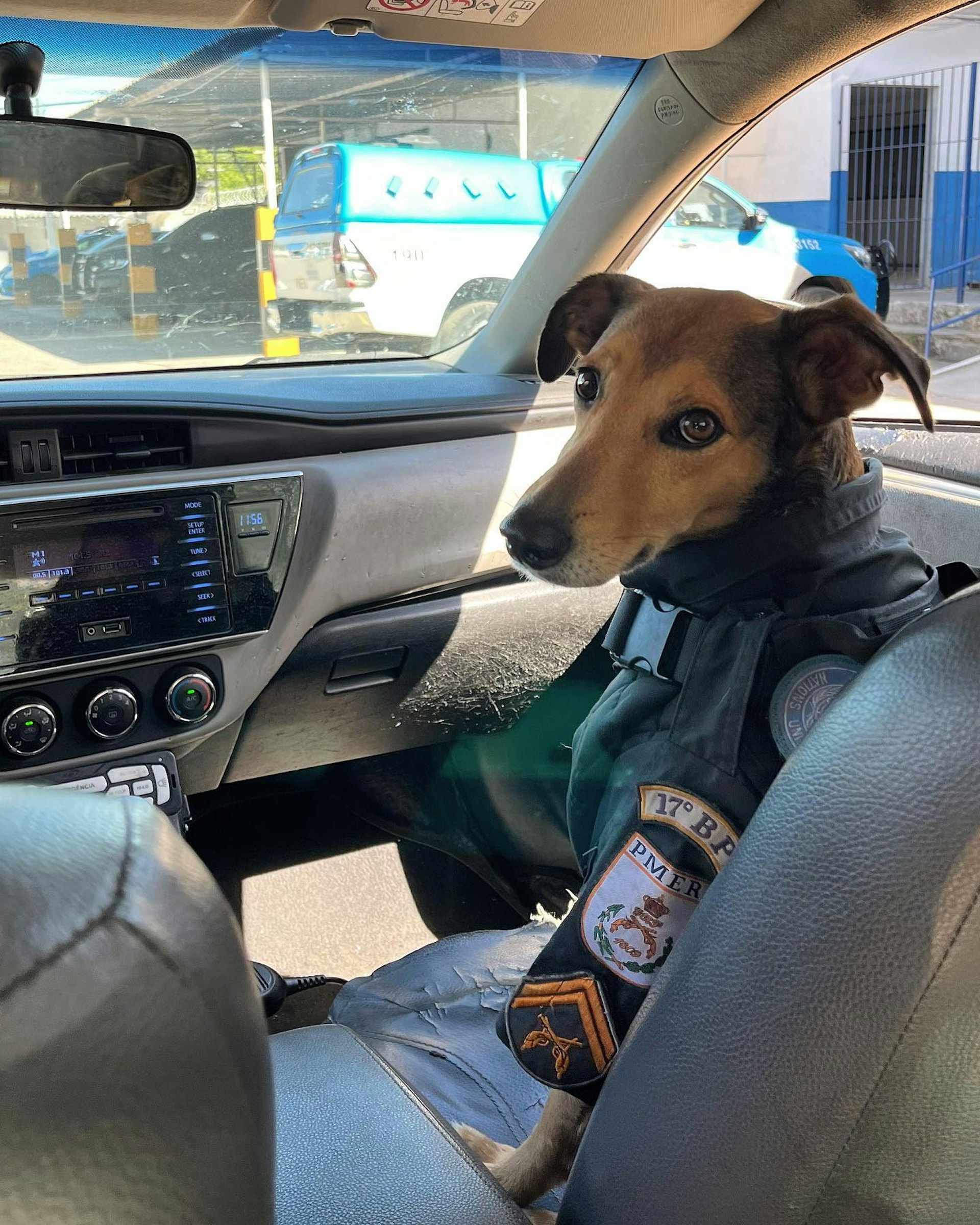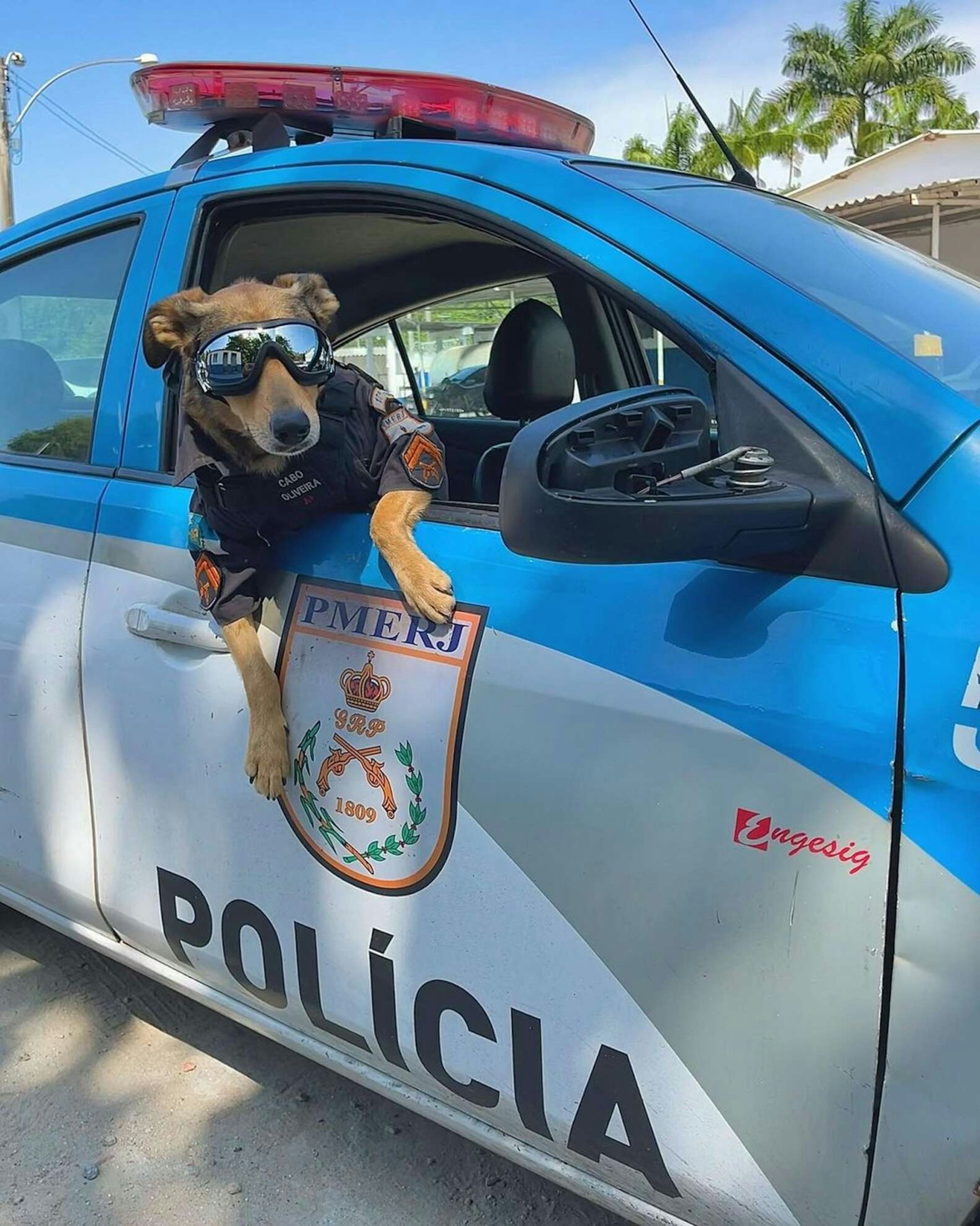 一間派出所的巡邏犬竟然不是正規訓練內的警犬,而是多年前一隻不請自來到派出所白吃白喝的流浪狗,後來牠被所內警員收編,最後還破格讓牠升格當警犬,狗狗也不負眾望努力完成巡邏犬的使命,威風凜凜的模樣相當帥氣。 (instagram@oliveira17bpm)