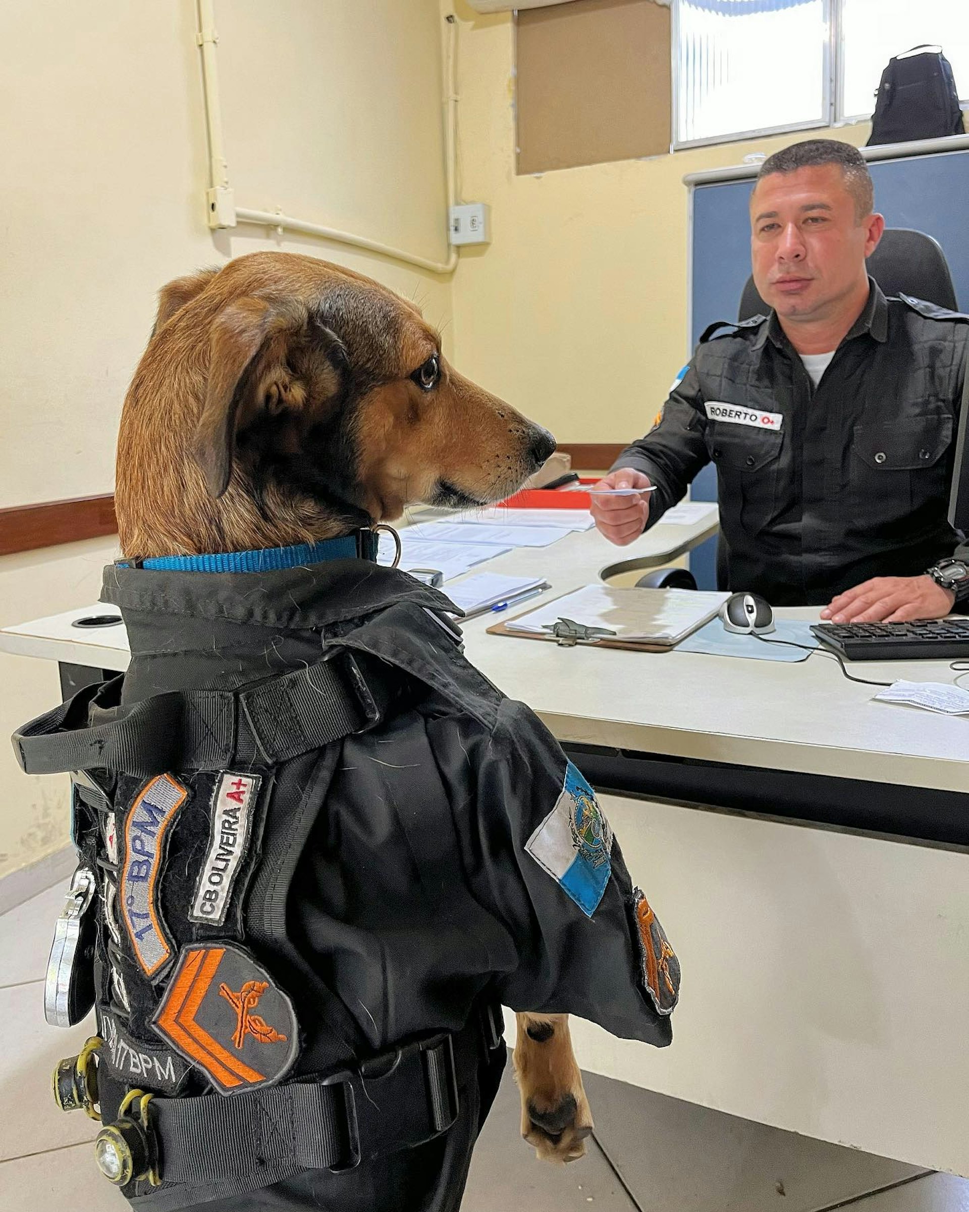 根據《The Dodo》報導,巴西里約熱內盧警察局第17營分局(Rio de Janeiro, Brazil’s, 17th Battalion)有一隻名叫奧利維拉(Oliveira)的警犬身分相當特殊,她並不是這間警察局本身就擁有的編制下的警犬,而是一隻「不請自來」的流浪狗待在警局內耍賴多時,最後竟然破格升成警犬,經歷可說是十分勵志。