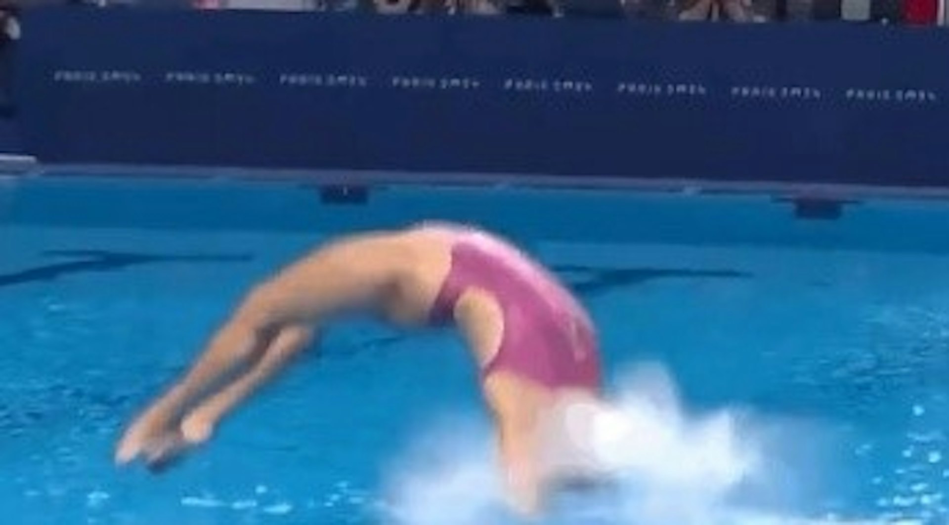 墨西哥選手華斯姬絲(Aranza Vazquez)在第四跳犯下嚴重錯誤,炸出巨型水花,全部裁判給她0分。(網上片段截圖)5.39.217.77:88988 m$ @8 D t9 U# q