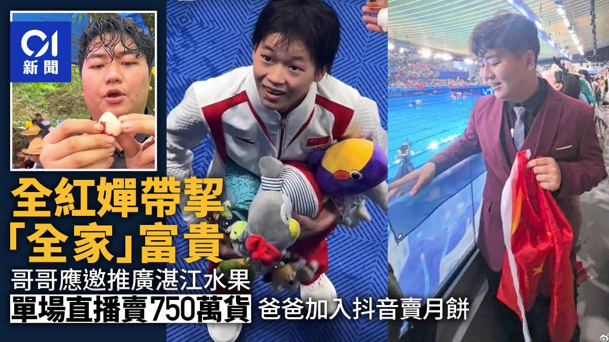 + s; O, M7 |! S" I2 d全紅嬋在巴黎奧運會拿下兩枚金牌後,內地出現了一波「全紅嬋熱」。內媒報道指,全紅嬋哥哥全進華及爸爸全文茂都有網上「帶貨」生意,其中全進華8日在巴黎塞納河畔的一場直播的銷售額更高達至500萬~750萬元(人民幣,下同)。- V: D7 t* a9 q9 A4 p2 q
