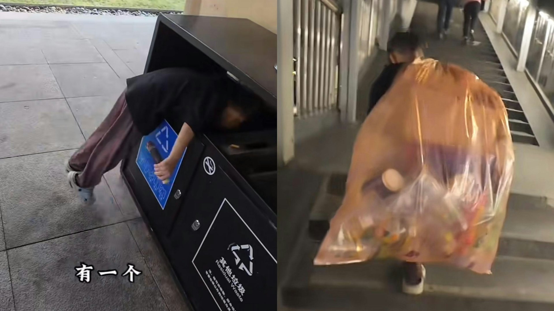 廣州11歲男童輟學凌晨拾荒換食物。(影片截圖)