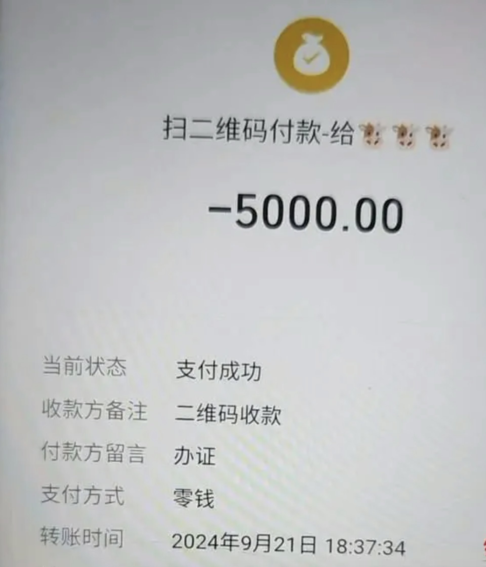 鐘女士更詳細說明,「購買一名女童的價格為14萬元,男童的價格為16萬元。如確定購買,在繳納定金後,只需提供父母雙方的身份證即可坐等孩子到來。」為印證自己「生意」火爆,鐘女士向記者展示了一張「顧客」支付定金的轉賬截圖。記者注意到,該轉賬資訊發生在9月21日,轉賬留言標註為「辦證」。: V" Z' H# y4 [0 ~& s