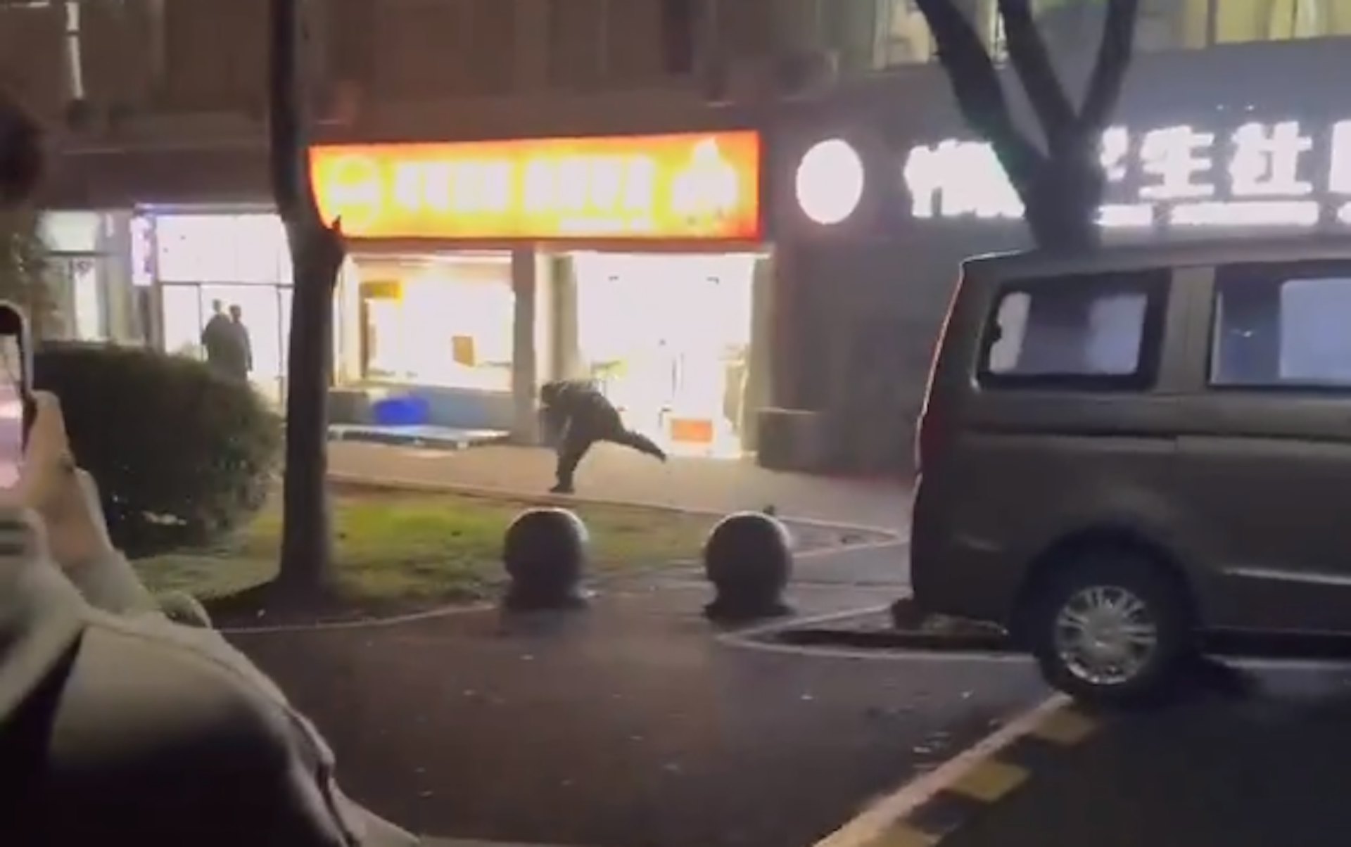 9 {- R1 a1 F, q: `0 n$ y `兇手走近鏡頭,可以清楚看到他手上持有利刃。(影片截圖)8 ?3 {0 Y; c* I, [% G$ G