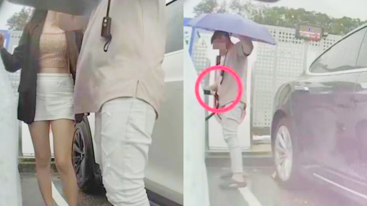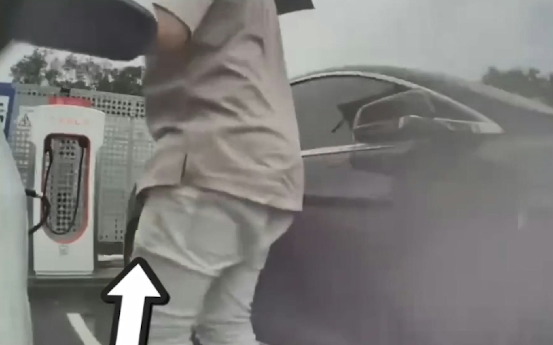 : ^# X% f* `: M+ I" g2 ~台灣一名男司機硬拔女子駕駛的Tesla充電槍,衝突過程全被錄下。(YouTube@即新聞)