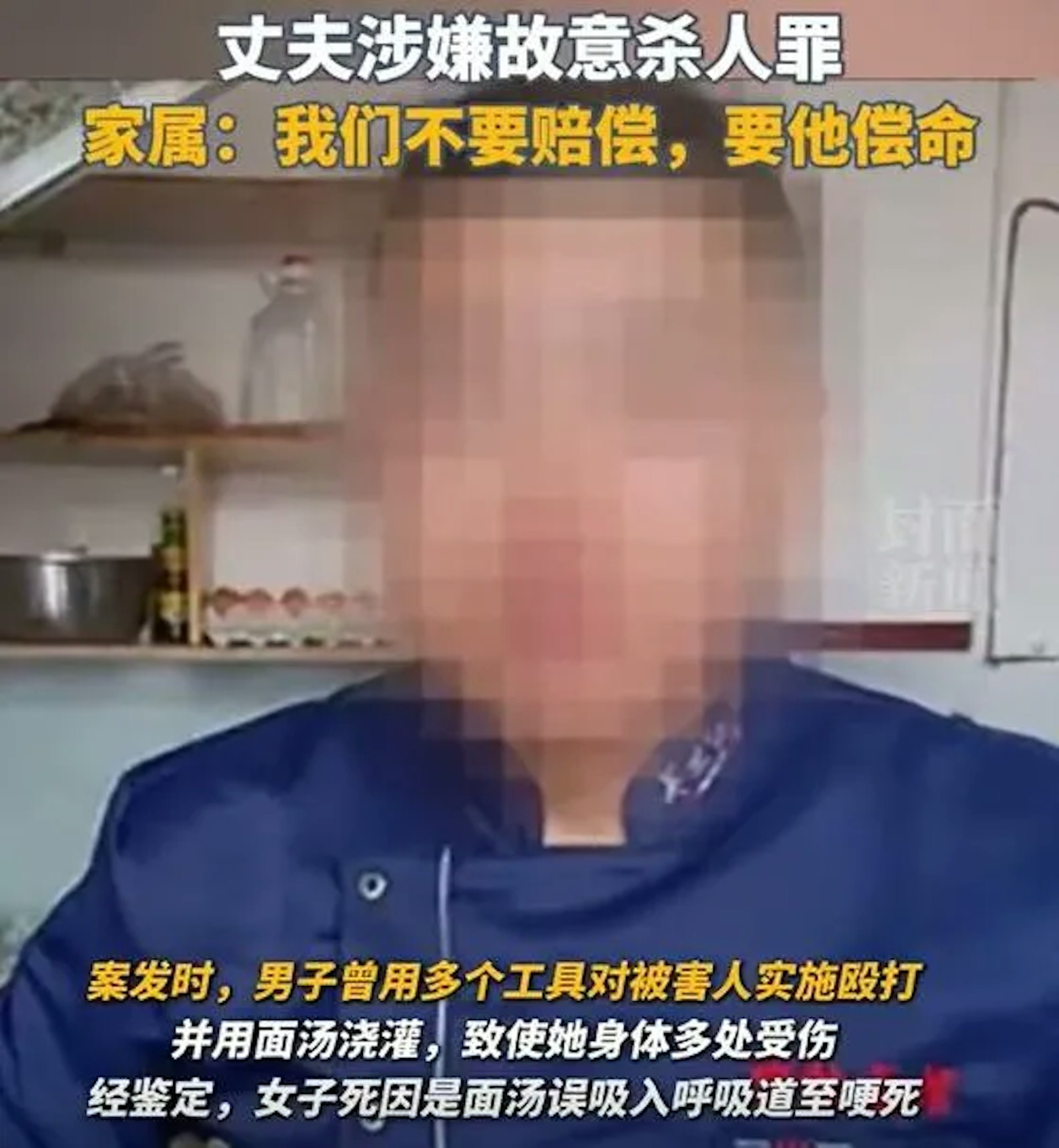 ! X2 r' e- T u3 d- s" ? h7 s李男用煮麵水把妻子活活嗆死。(新浪微博截圖)