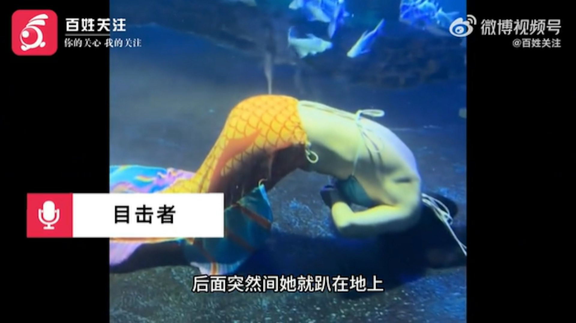 從流出的影片中可以看到,「美人魚」在水中表演的過程中失去動靜,有許多遊客都發現不太對勁,討論是表演的劇情,還是真的出事了,「她是在憋氣嗎?」「不像是在憋氣!」「應該出意外了!」「叫人了嗎?」「叫人了!」過了一陣子,工作人員趕來施救。