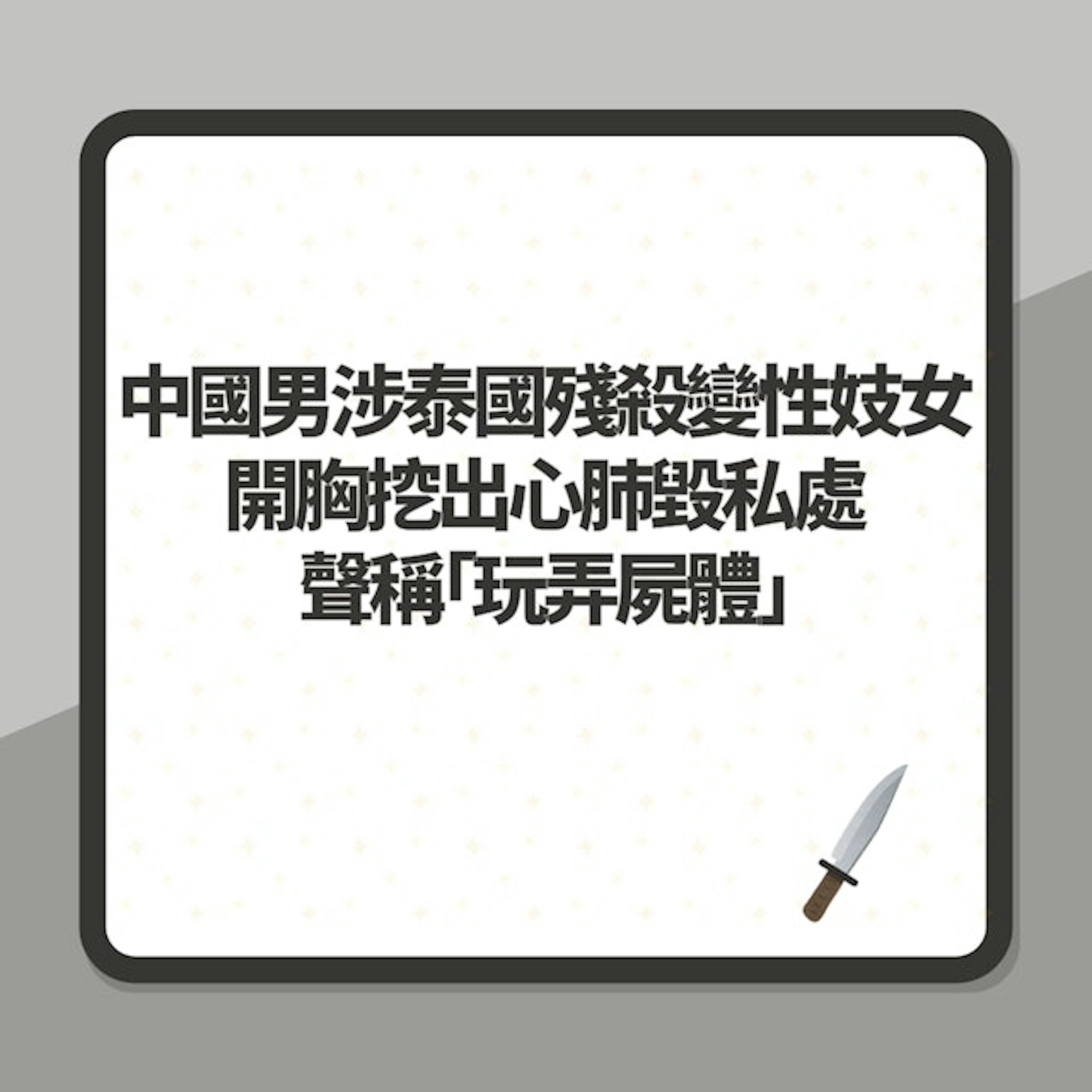 根據《Thai Examiner》報道,這宗案件發生在4月26日凌晨,Tongyuan Fu涉嫌在其位於芭堤雅中部的公寓內殺害25歲跨性別女子帕娜卡(Woranan Pannakha),接着將她的遺體拖入浴室,使用剪刀(警方確認並非刀具)從頸部一路切開至下體,再以「手術方式」取出心臟、左肺及胸部矽膠。5.39.217.77:8898# {3 ?7 w; M" r) o2 C