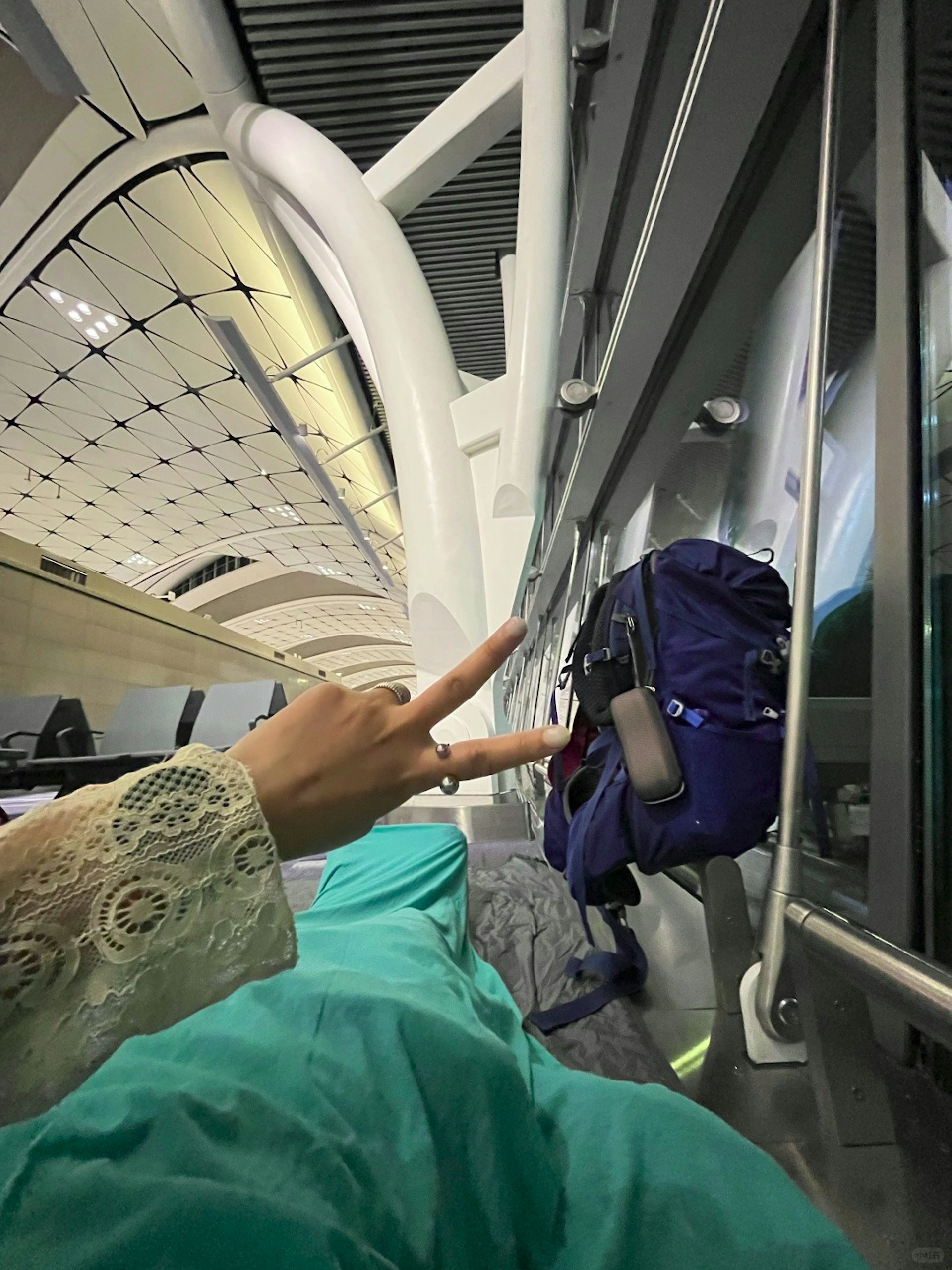 / |4 O& E: V; D9 l3 ~ g4 l4 Z相片見到,樓主在機場玻璃較旁地上佔據一角。(小紅書)( W: X& D' ?; v% C, W5 }1 m