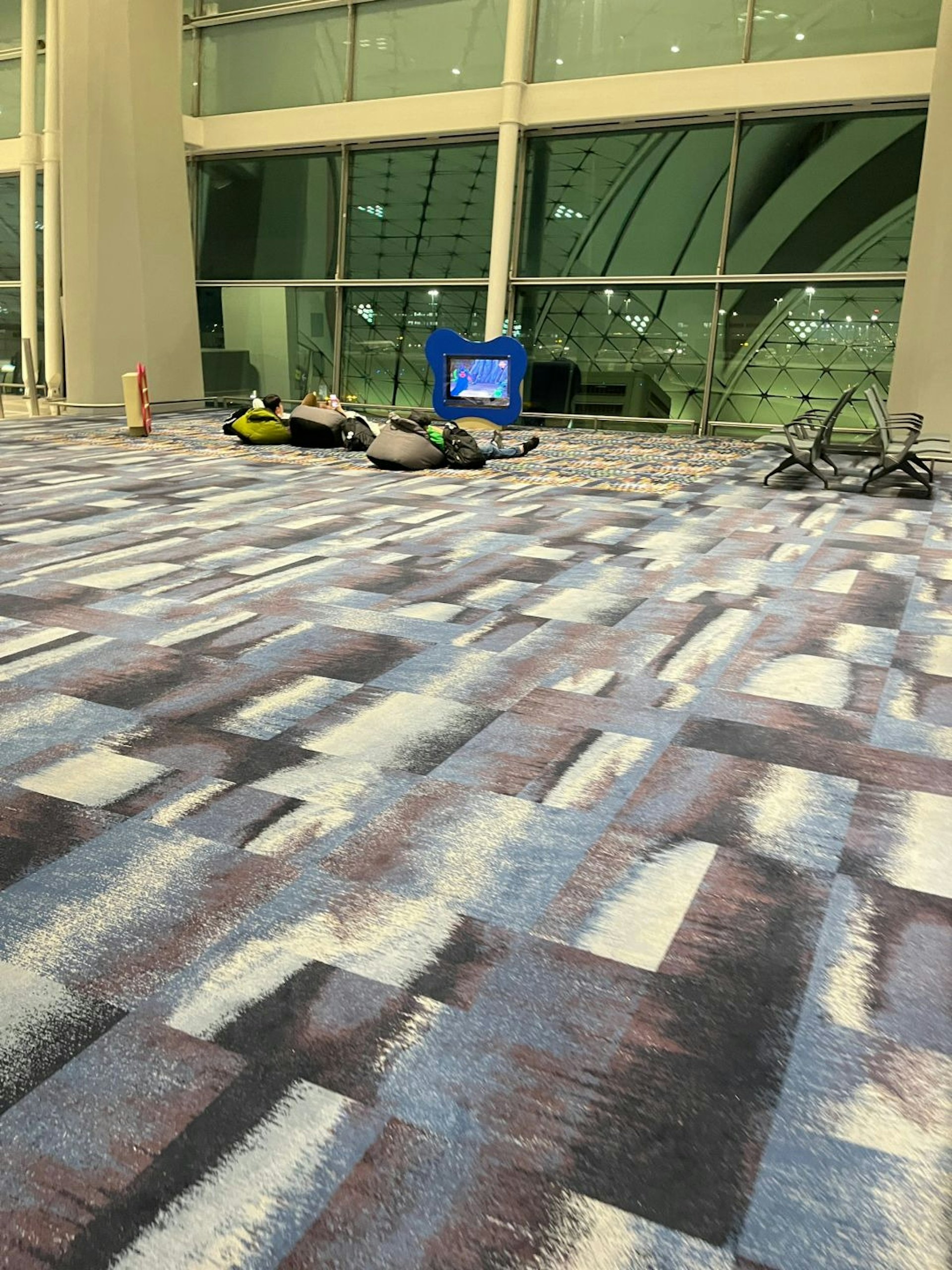 相片見到,樓主在機場玻璃較旁地上佔據一角。(小紅書)- e) p) ^. x: l# k6 j! d& m/ p