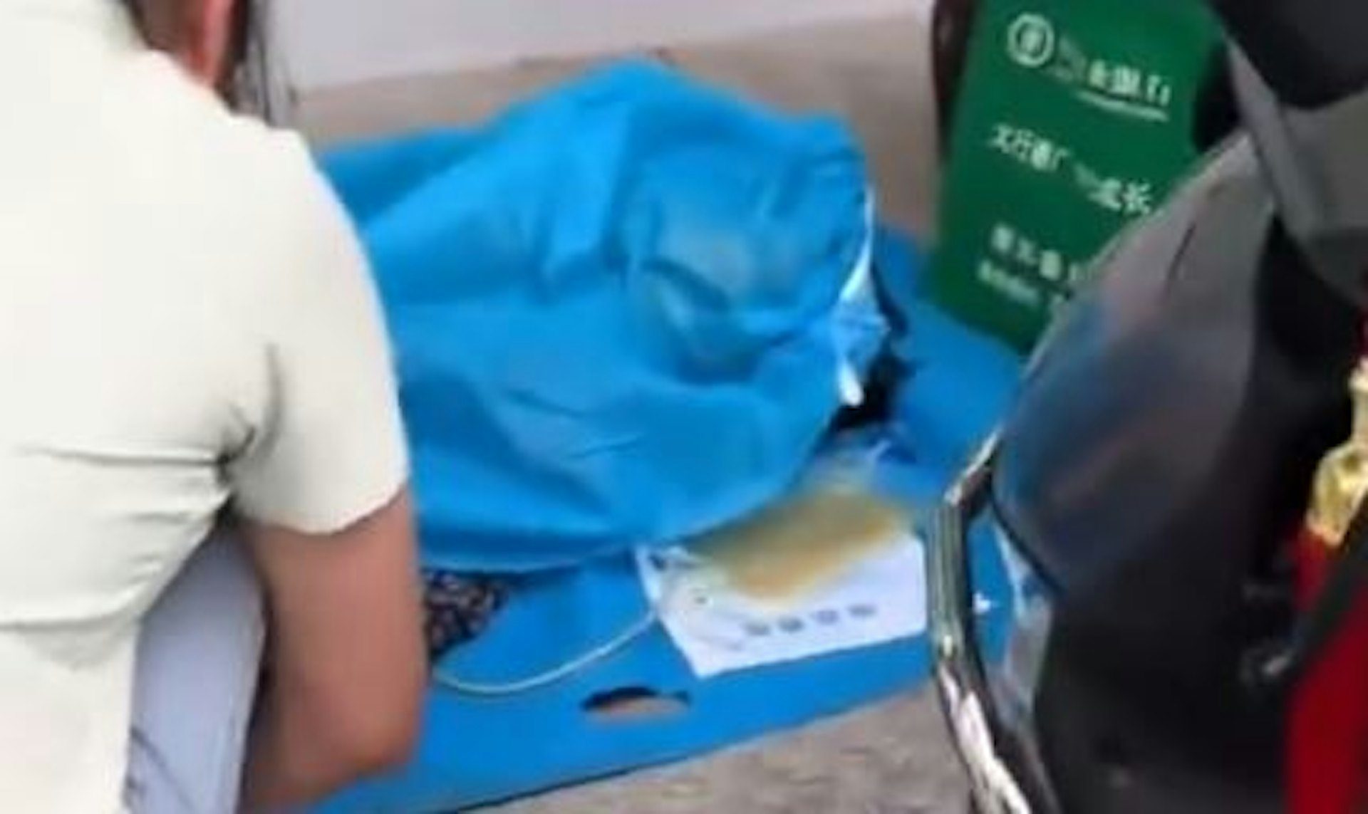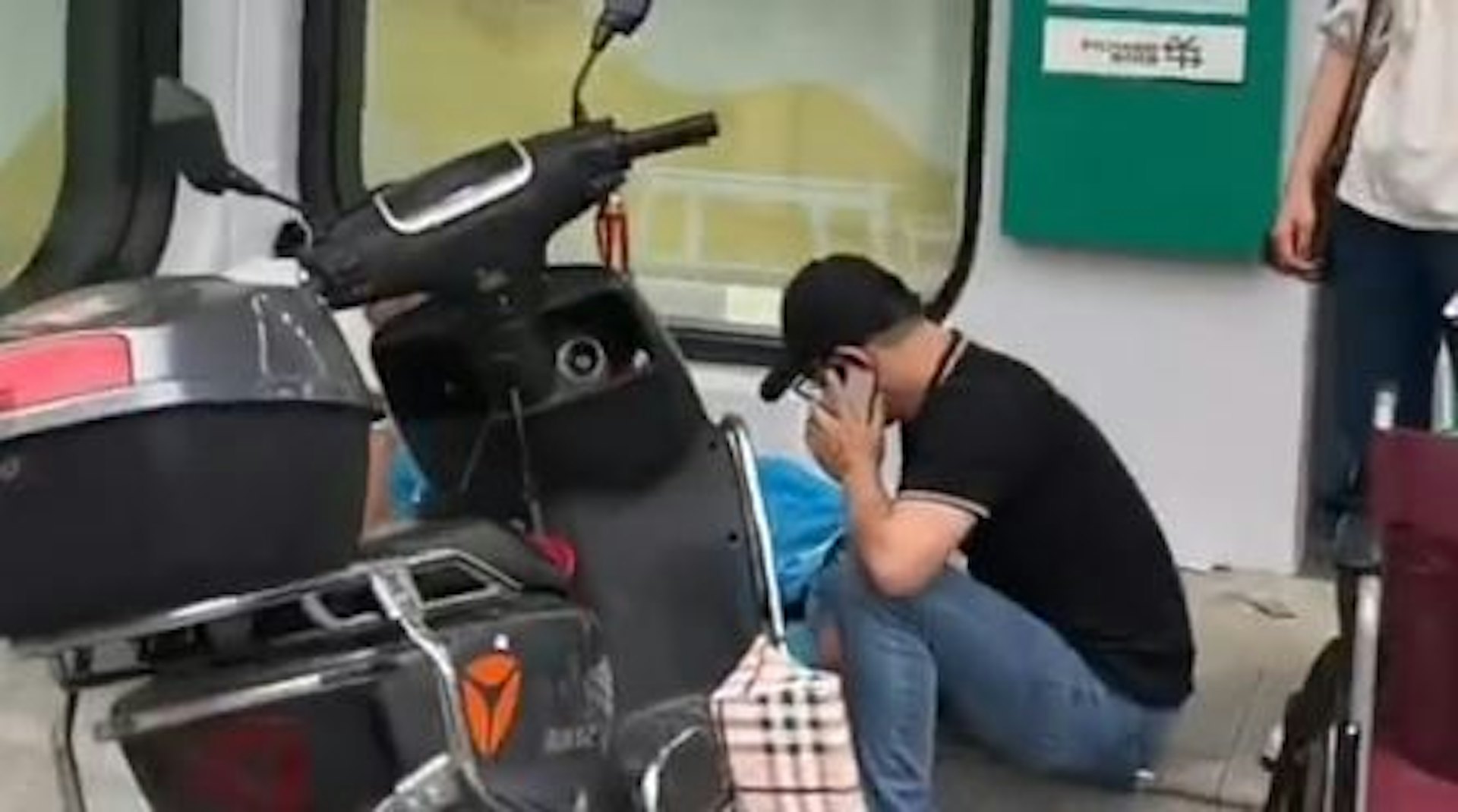 1 r( e' _. ^( {, c事主到了農業銀行門口時慢慢倒下離世。(影片截圖)- ^! n/ E0 K f/ |: S# s* @