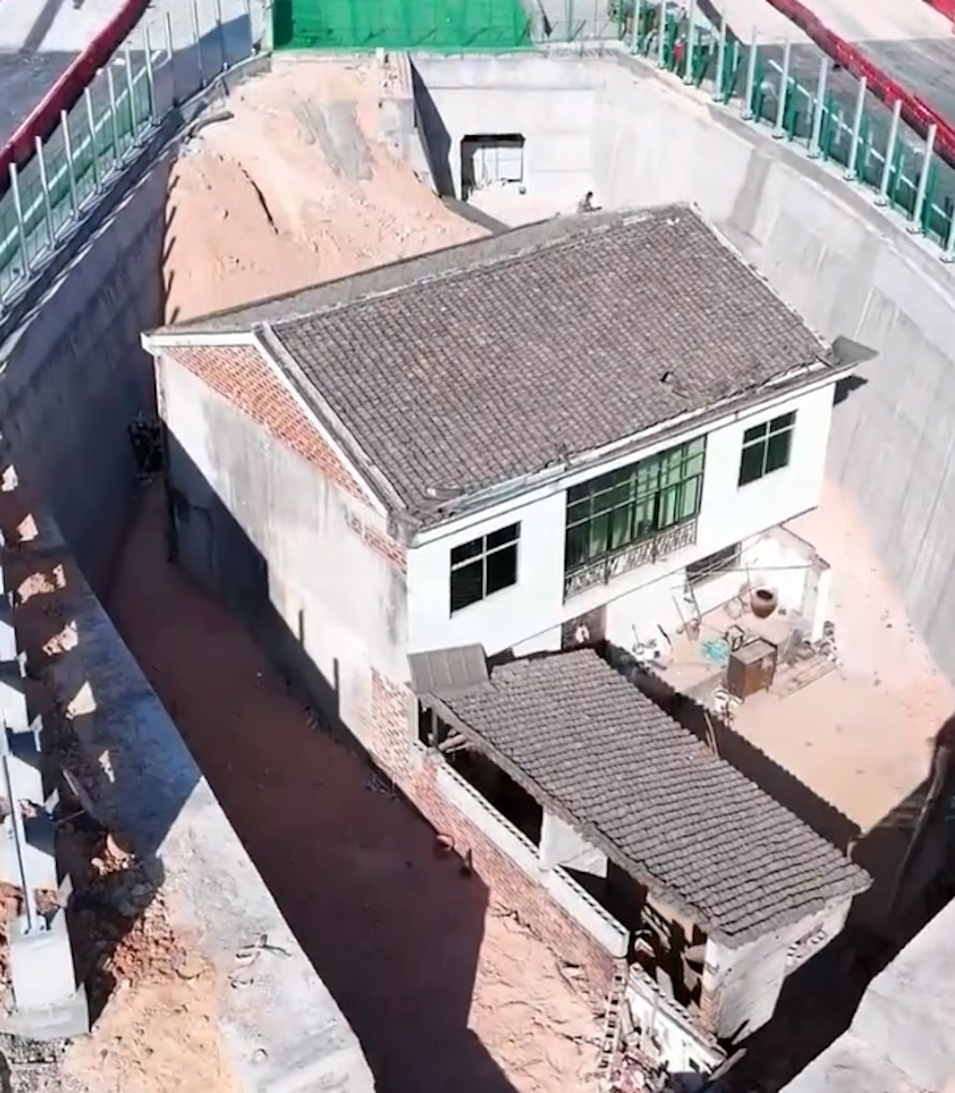 據《縱覽新聞》報道,「最強釘子戶」是一幢二層高的民房,被今年4月正式通車的G206繞城公路包圍,在空中俯瞰有如一隻眼睛鑲嵌在公路中央,因此還被網民戲稱為「金溪之眼」。/ Z% ]! `+ t1 a