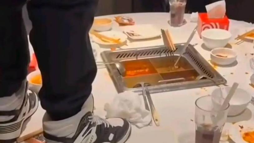 2名17歲少年站在圓桌上,對著火鍋裡撒尿,海底撈怒提告,法官判賠936萬。(圖/翻攝自微博)